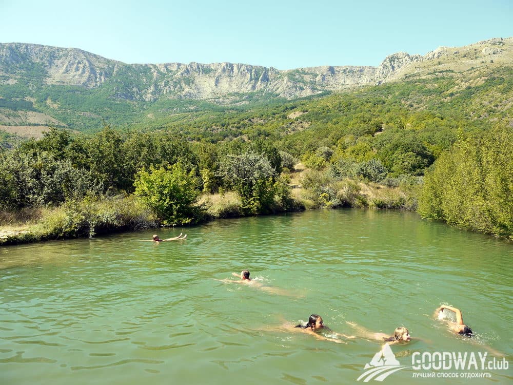 Из Симферополя переезжаем в Рыбачье, купаемся в море, проходим Массандровские виноградники и начинаем подъём по туакской балке на т/с Чегинитра. Подъёмчик облегчит купание в горном озере.