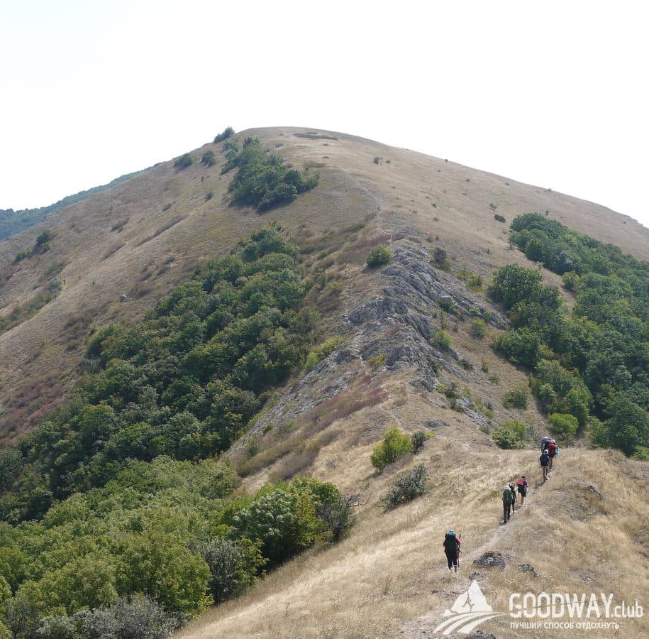 Сегодняшний день будет самый ключевой и эмоциональный. Через весь хребет Орта-сырт, с небольшими подъёмами и спусками, мы идём на юг, к манящему морю. Но путь не прост. Хребет местами довольно острый — всего до 3м ширина, а по бокам крутые осыпи. Перчика почти всегда поддают сильный ветер и низкие облака, временами обволакивающие нас. Ощущение такое, что мы идём по краю света… По пути нас будут сопровождать оригинальные причудливые виды на лесистые горы восточного Крыма. И это ещё не всё! Предстоит продраться через заросшее узкое ущелье, в нескольких местах в качестве развлечения можно съехать по осыпи «на пятой точке». После всего пережитого мы, гордые собой, через виноградники выйдем в посёлок Весёлое, где можно докупить провизии для праздничного прощального ужина. Последние 4 км до моря прокатимся на такси, по асфальту идти неинтересно. Лагерь разобъём на галечно-песчаном пляже, в 10 метрах от моря.