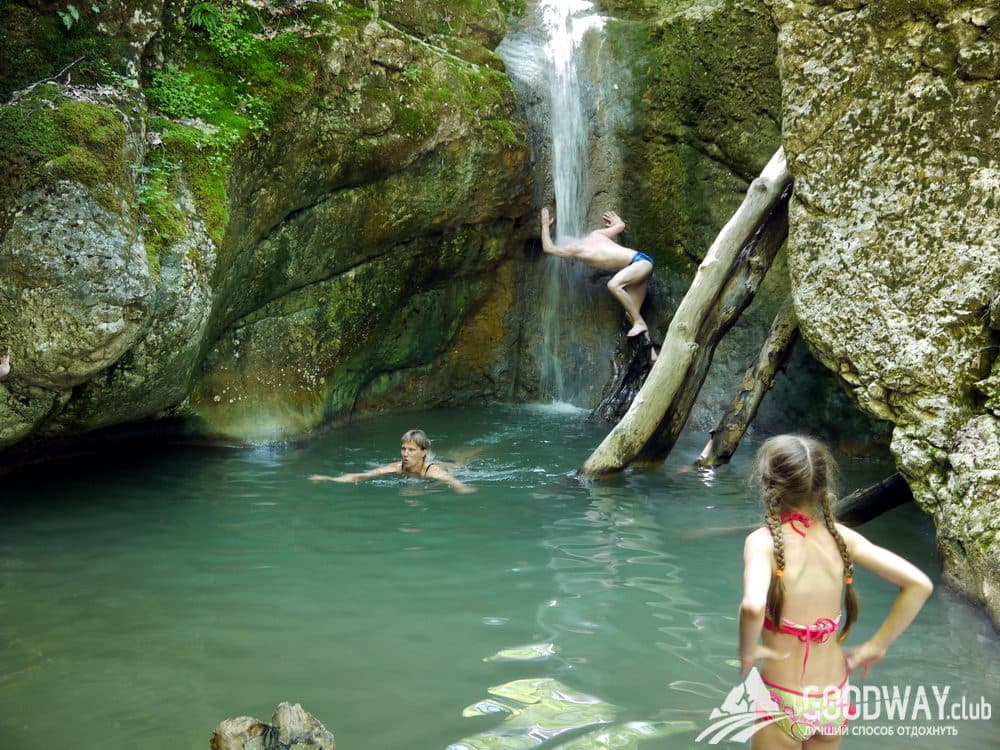 Каньон порадовал множеством переходов через речку, нежаркой тенью и интересными препятствиями. Особенно «жестокие» были прозваны нами «бабушками» и «прабабушками» (последнее означает «зашкаливающе страшно»), так как вспомнить только «маму», преодолевая такое, недостаточно.