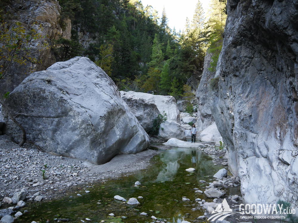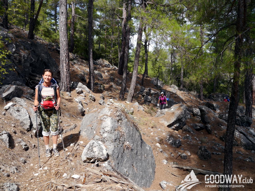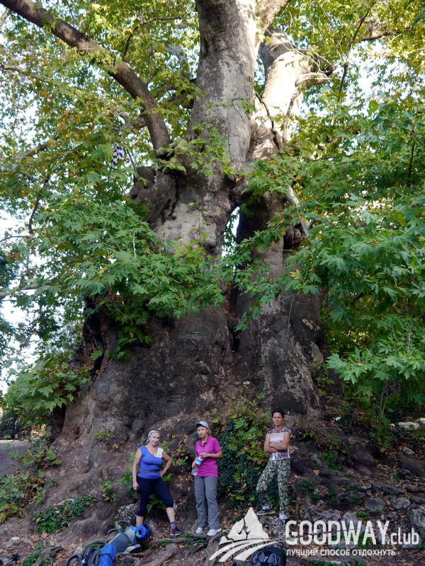 Бесконечные изумрудные ванны и скалы, небольшие водопады. Пройдём каньон до конца, и древняя лесная дорога выведет нас в третий каньон, где мы пообедаем и покупаемся в ванночках. Каньонная часть нашего маршрута закончилась, начинается горная. Несложный подъём до высоты 950м, полюбуемся открывшимися видами на горы, пройдём через маленькую деревню и посмотрим, как живут турки. Отсюда уже видно самую высокую цель нашего путешествия — г. Тахтали(2365м). Затем спустимся в деревню Гедельме. Здесь нас ждёт не только магазин, но и целая куча интересных достопримечательностей: необъятный платан возрастом 2100лет и обхватом 16 м, средневековая крепость и карстовая пещера. Заночуем в сосновом лесу.
