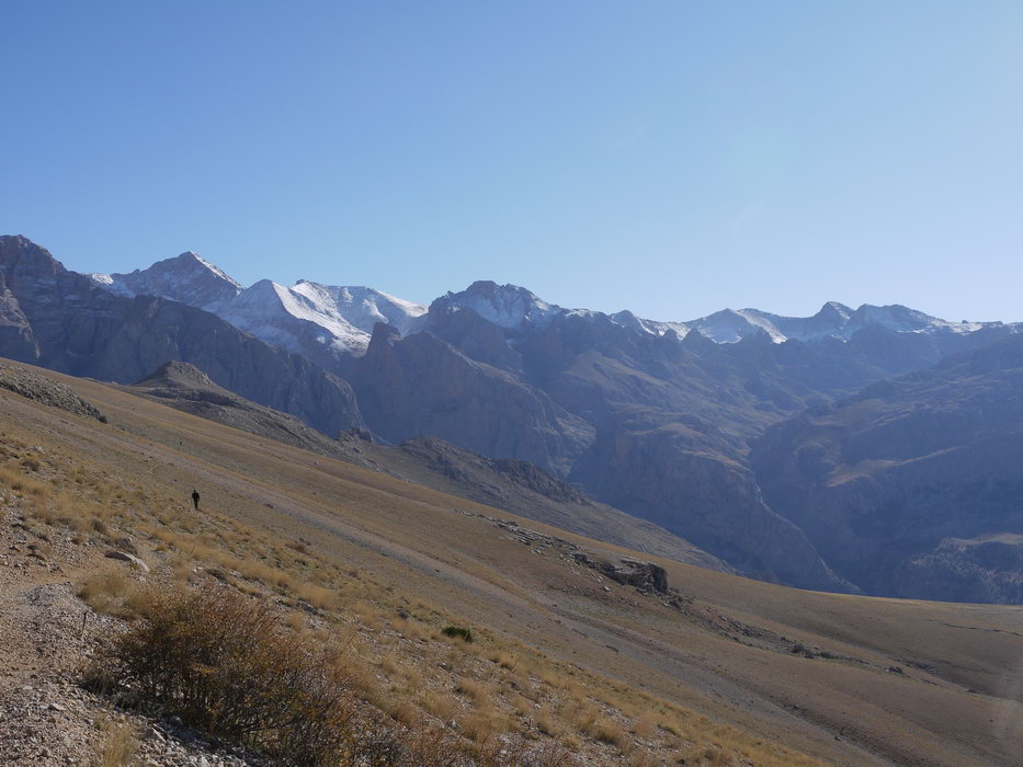 С утра штурмуем перевал Челикбуйдуран (3540м), оставляем рюкзаки и отправляемся на вершину горы Эмлер (3723м). Нелегко нам это дастся, но вид отсюда стоит затраченных усилий! Весь массив Аладаглар и даже соседний массив Центральный Тавр во всей красе! Затем будет затяжной спуск по ущелью Караялак к удобному лагерю на высоте 2500м.