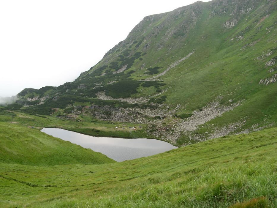 Стараемся выйти пораньше, ведь мы наверняка ближе к вершине Говерлы, чем остальные, желающие забраться сюда. Поэтому постараемся не потерять уникального шанса оказаться там в одиночестве. Возле стелющихся можжевельников поднимаемся на Говерлу. По обилию разных сооружений сразу понятно, что это вершина Украины. Да и по количеству мусора тоже 🙂 Фотографируемся с понравившимися экспонатами, видами и идём дальше по хребту через вершины Брескул (1911м), Пожижевская (1822м) и Туркул (1933м). Спускаемся на ночёвку к озеру Нэсамовытэ (1750м), самому высокогорному озеру. С озером связано множество легенд. По одной из них, если озеро побеспокоить: искупаться или кинуть камень, то сразу начнётся сильная буря. По другой, если искупаться, то женишься ровно через год. Первая легенда точно работает, проверяли 🙂 Так что вторую лучше проверяйте в другой раз 🙂