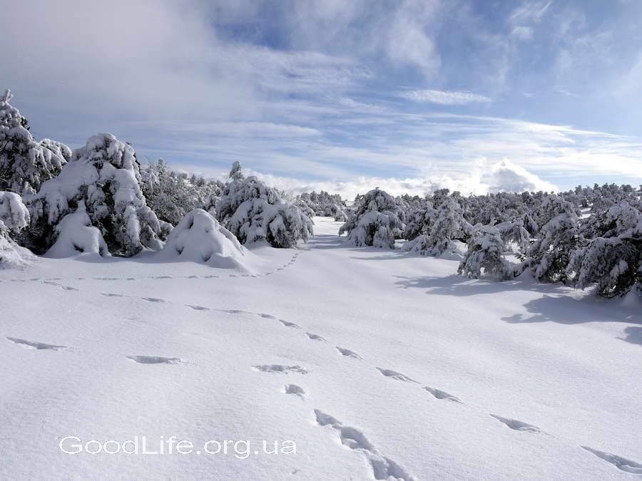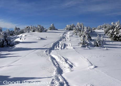 После подъёма на Гурзуфскую яйлу открывается великолепный вид на Партенит, Гурзуф и Аю-Даг. Также видно ослепительно сверкающую на краю яйлы Беседку ветров. От беседки берём направление на запад, выходим на Ялтинскую Яйлу. Через г. Кемаль-Эгерек (1529м) идём к т/с Кемаль. По пути можно встретить непуганных косуль, разбалованных жизнью в заповеднике. Если снег не глубокий, мы заходить на т/с Кемаль не будем, и сразу пойдём дальше на т/с Кош, таким образом выполним план за 2 дня и превратим этот поход в 4-х дневный.
