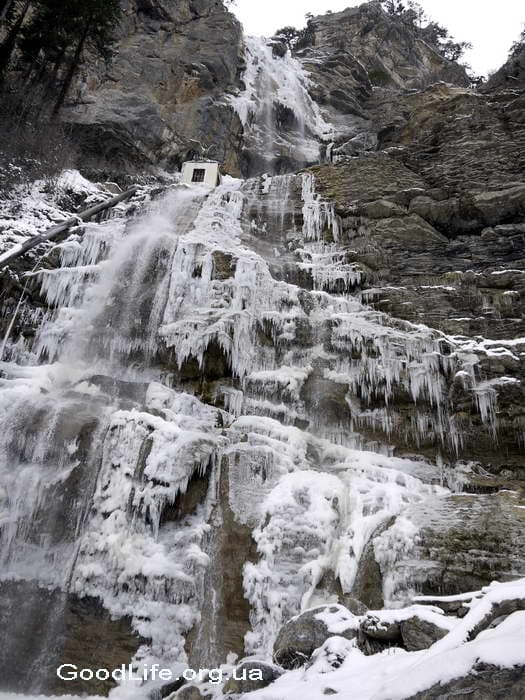Небольшой переход по Ялтинской яйле. По тропе Таракташ спускаемся к верховьям вдп. Учан-Су. Скалы Таракташ отделены от яйлы небольшим ущельем, по которому и петляет тропа. С тропы скалы выглядят как совершенно отвесные слоистые стены. Местами вода и ветер прорезали в них симпатичные окошки. Можно лечь на камень, с которого срывается вода, и посмотреть вниз. Головокружительная высота! Люди внизу совсем крошечные. Далее спускаемся к водопаду Учан-Су. В любом случае, он будет намного красивее, чем мокрая стенка в летнее время. А если повезёт — он предстанет перед нами в полном великолепии, как на фото вверху. Если уехать в Ялту прямо от водопада не удастся, пойдём дальше, вдоль речки Водопадная, и насладимся ещё множественными красивыми перекатами и водопадами. Выйдем на трассу у Поляны Сказок. Здесь до Ялты уже масса маршруток.