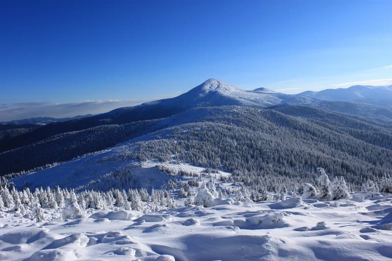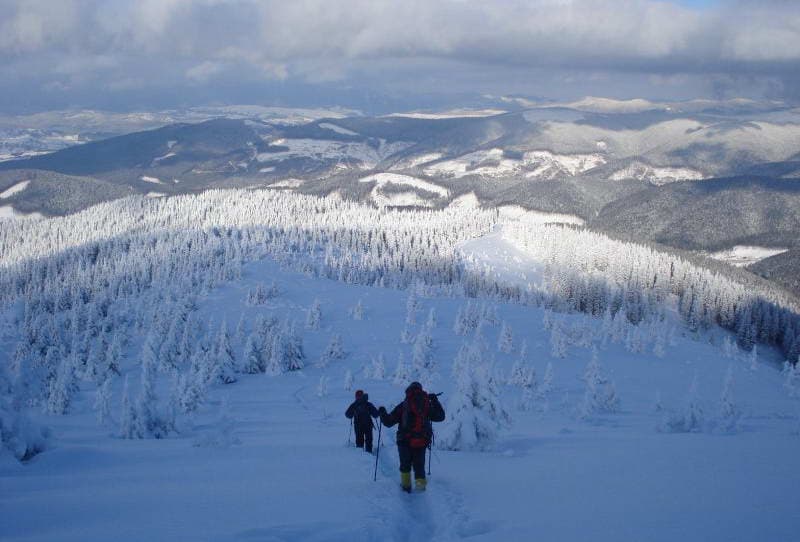 Зимой Карпаты совершенно иначе выглядят и ощущаются, чем летом. Горные туристы и альпинисты даже не воспринимают горы без снега. Многие считают, что снежные горы красивее и интереснее зелёных. В этом походе у вас будет возможность залезть на две самые популярные вершины Карпат – Говерлу (2061м) и Петрос (2020м), и составить обо всём своё мнение. Снега тут порой до 2 м, но он обычно покрыт ледяной коркой, и ноги не проваливаются глубоко. Обе ночёвки будут в тёплом приюте, что значительно облегчит жизнь.