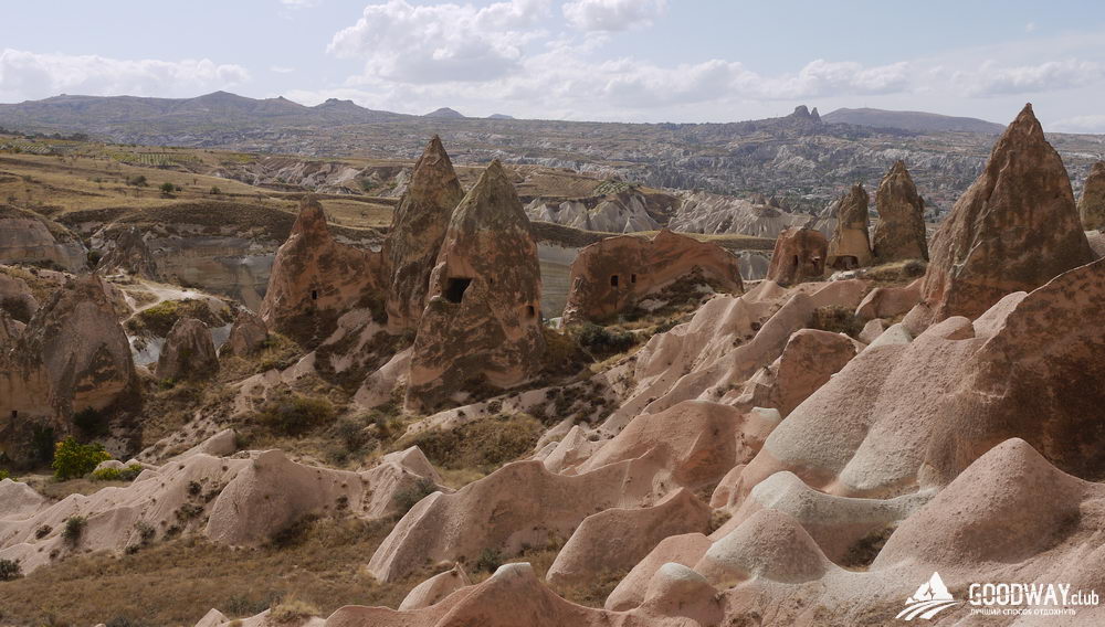Национальный парк Гёреме, пещерные и подземные поселения Каппадокии входят в список всемирного наследия ЮНЕСКО. Местность интересна ландшафтом вулканического происхождения, подземными городами, созданными в 1-2 тысячелетии до н.э. и обширными пещерными христианскими монастырями, ведущими свою историю с 1 по 15 века н.э. Здешние туфы очень легко поддаются обработке, а при контакте со свежим воздухом порода «каменеет». Это её свойство и использовали древние жители. В переводе на русский Каппадокия означает «страна прекрасных лошадей», и сейчас это название тоже оправдывает себя. Лошадей много, можно заказать конные прогулки и экскурсии. Вокруг все настолько необычно, даже нереально, что кажется — мы в ином мире. Фотографий за 3 дня Каппадокии наверняка будет больше, чем за 9 дней Ликийской тропы.