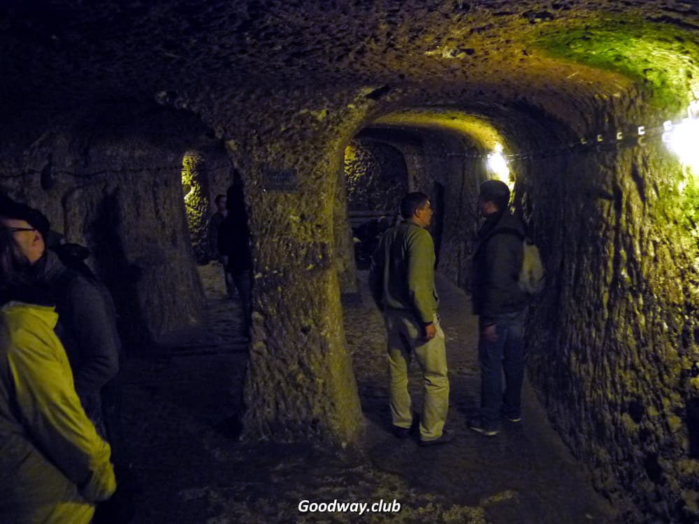 Про Green Tour: экскурсия длится с 9:30 до 18:00, стоит 50 евро. За день вы проедете по кольцу длиной 240км, сначала посетите древний подземный город Деринкую, состоящий из 8 этажей. Затем пешая прогулка 4 км по дну каньона Ихлара. Здесь совсем другой ландшафт: гранитные скалы, много зелени, прохладная речка. В каньоне будет сытный и вкусный обед возле шумящей речки (включен в стоимость). Потом монастырь Селиме. Как полагается, все просторные помещения устроены внутри горы. А на вершину ведёт «лестница в небеса»: узкий крутой лаз со ступеньками. Ваш гид наверняка скажет, что пролезть там нельзя, но не верьте. Можно, если осторожно. В конце тура вас ещё привезут в камнерезную мастерскую, где из местного оникса вырезают разные поделки. Прямо при вас мастер что-нибудь изготовит из бесформенного куска породы.