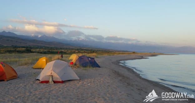 Последний переход по очень живописной дороге вдоль бурной горной речки. Потом переезжаем в Каракол, делаем набег на рынок и магазины и везём добычу на дикий пляж озера Иссык-Куль, ставим палатки недалеко от воды, продолжаем расслабляться…