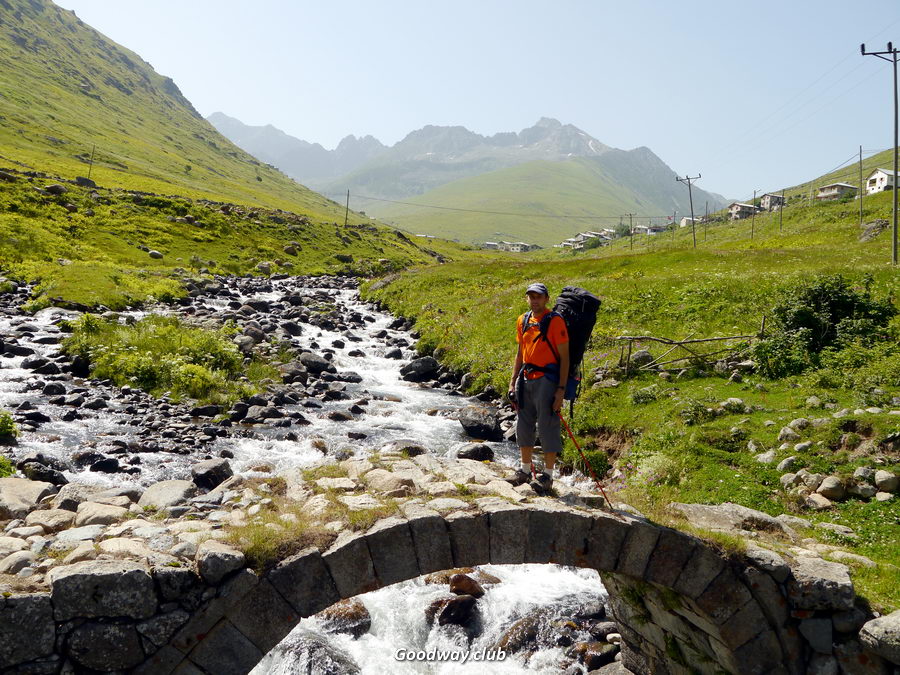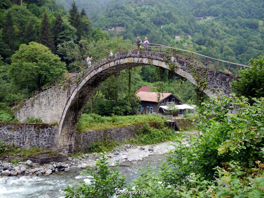 Мимо чайных плантаций едем в деревеньку Чат. По пути будет парочка старинных мостов и средневековая крепость, остановимся их посмотреть. В Чате начинается наш поход по Турции. Выпрыгиваем из автобуса, подгоняем рюкзаки и в путь. В качестве акклиматизации будет постепенный подъём с 1200 до 1800 м по красивому каньону с водопадами и минеральными источниками. Лагерь устроим на окраине полузаброшенной деревеньки Калекёй.