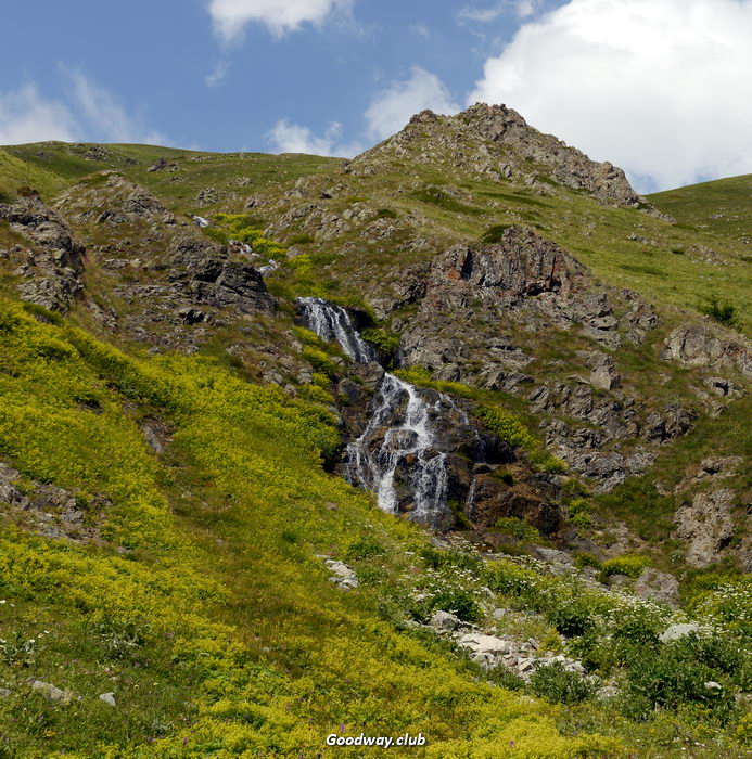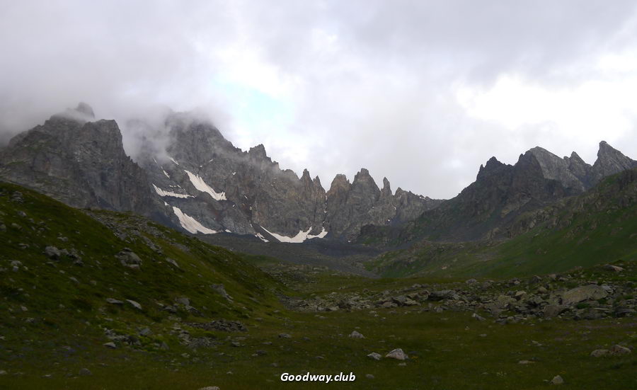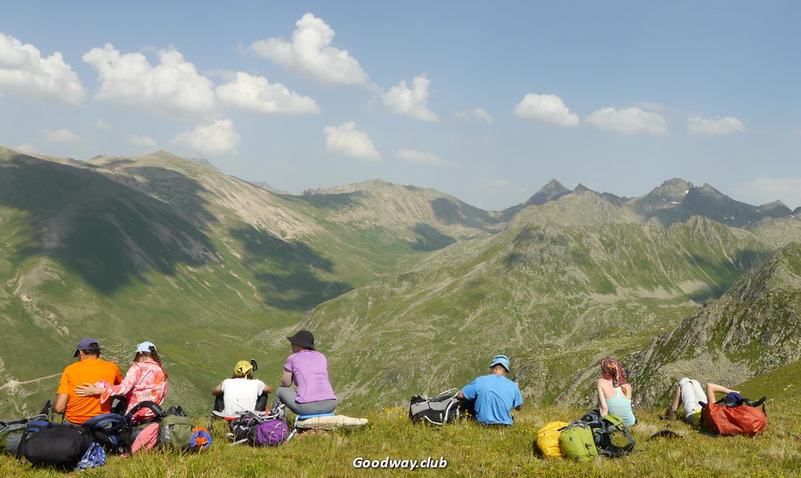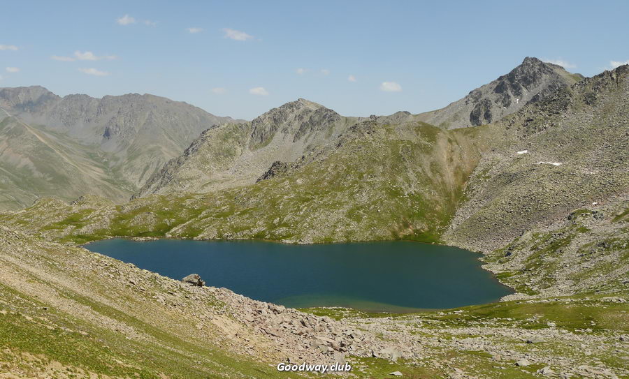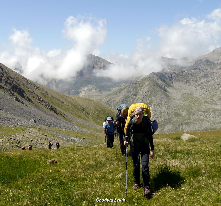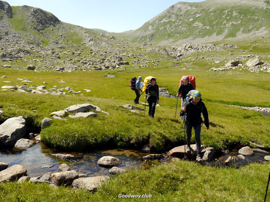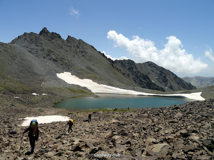 С утра, пока силы свежие, поднимаемся на перевал Ходакур 3165м. Отсюда уже видно заснеженную вершину Качкара, да и вообще виды красивые. На обед перейдём к озеру Дёнер (3035м), оно на удивление тёплое, можно купаться. Дальше несложный спуск по долине Давали с множеством ручьёв. Лагерь поставим у речки, в которой тоже можно купаться.