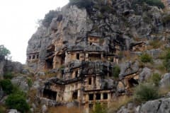 Но все это НИЧТо по сравнению с МОРЕМ. Чудесное, очень чистое, довольно теплое (все же начало мая). Сколько могли-столько купались. Наш маленький турист ВИТЯ-11 лет не удержался и выпросил себе маску у родителей. А что им оставалось делать-купили. Витя в море отрывался. Встречались очень часто развалины древних крепостей и городов. А какие города-Патара, Каш, Симена, Ксантос, Пидна, аполлония.. Даже сегодня здешние руины соперничают друг с другом в красоте.. Ни в одном городе, кроме Рима, не найти таких древностей времен Римской империи.. А какие места-бухта Бабочек, Райская бухта…