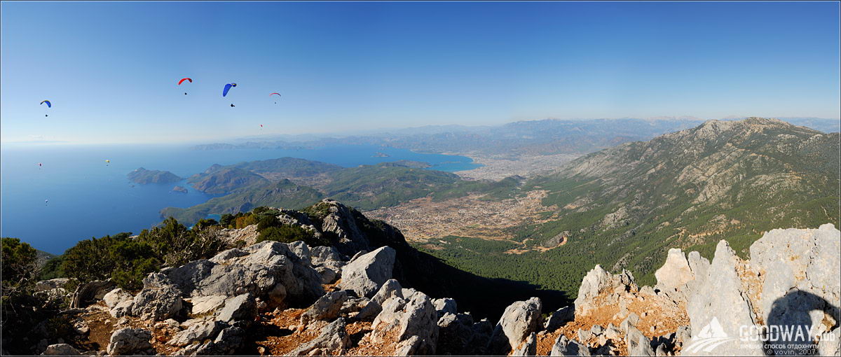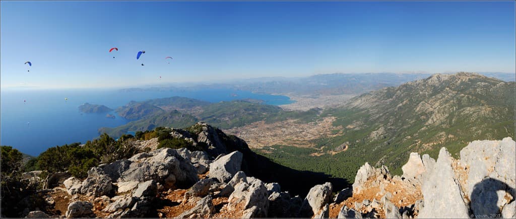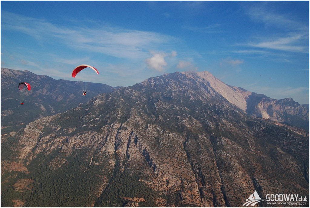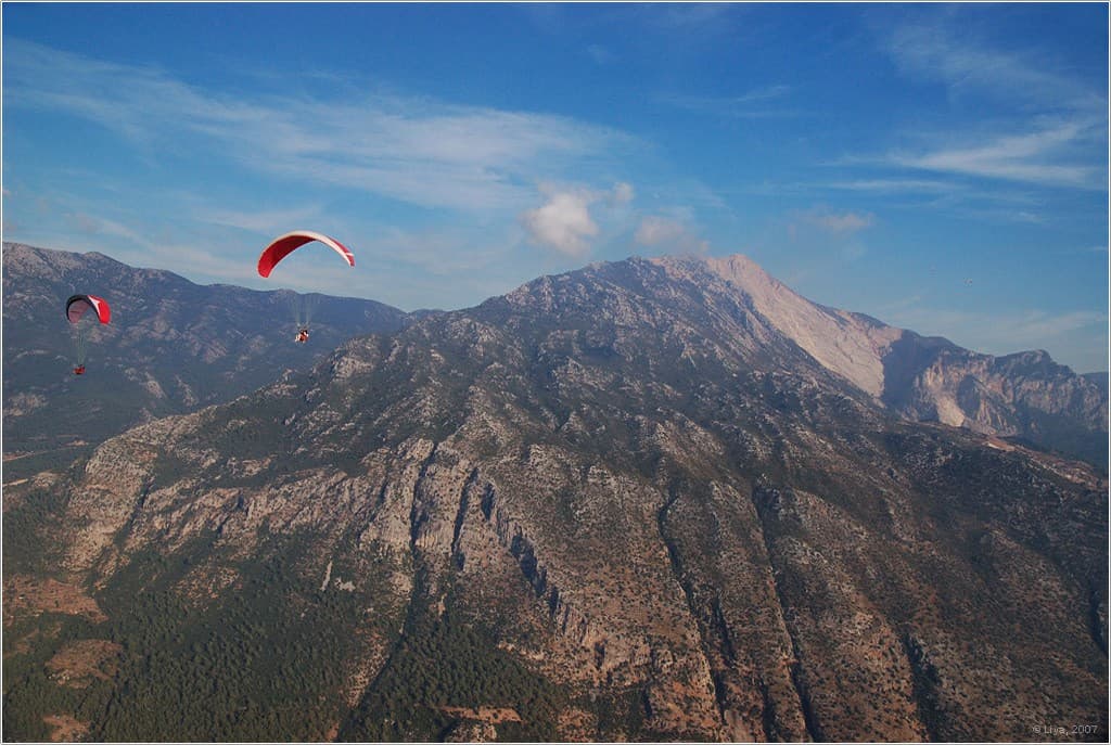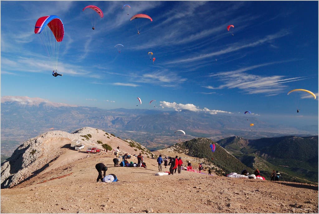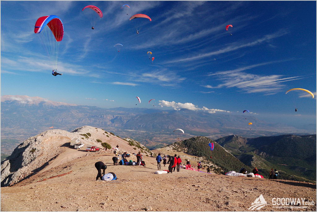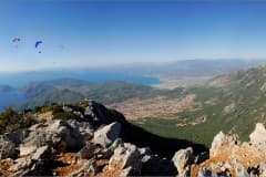 Сегодня у нас подъём на гору Баба-Даг (отец-гора). Чтобы облегчить задачу, сходим туда без рюкзаков. Подниматься будем через кедровые леса, по пути много чарующих видов на море и острова. На вершине горы большое оживление. Здесь очень удобное место для парапланеризма. У вас будет возможность улететь с 2000м в тандеме с инструктором и приземлиться на пляже в Олюденизе. Стоит полёт до 120 долл.