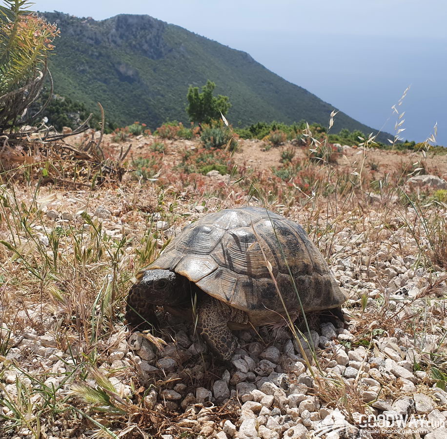 Что я всё за еду? А как же красота природы,море,черепахи и прочая вредно-ядовитая живность? Вот этой ядовитой живности-скорпионов,сколопендр,как впрочем и комаров мы не наблюдали ни разу (к нашему общему удовольствию) А черепахи постоянно радовали-неторопливо,нисколько не боясь нас ползали по тропе,наверно думая- и куда это двуногие,с такими большими мешками идут ?? Мешают только. Очень много колючих деревьев и кустарника. Даже очень. Не раз вытаскивали шипы и кровь стирали с конечностей.
