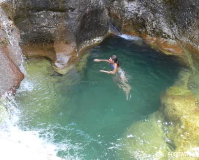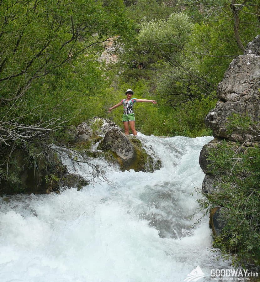 Начинается самый трудный и самый красивый участок каньона. Тропа постоянно взлетает вверх и тут же опускается вниз, обходя скалы. Рельеф сложный, местами приходится прямо-таки карабкаться на четвереньках. Физическая нагрузка будет не сильная, а вот психологическая — на максимуме: ходьба по мокрым скользким камням, переходы по брёвнам, тропы, идущие по краю пропасти — потребуют концентрации всего внимания. Поэтому мы будем часто отдыхать и переключать внимание на невиданно красивые виды. Вдоволь накупаемся и помассажируемся в порогах и водопадах. И вот каньон расширяется, течение реки успокаивается — мы вышли. Заночуем на одной из многочисленных уютных полянок в лесу, недалеко от воды.