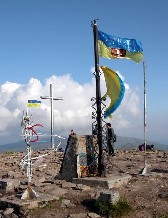 Стараемся выйти пораньше, ведь мы наверняка ближе к вершине Говерлы, чем остальные, желающие забраться сюда. Поэтому постараемся не потерять уникального шанса оказаться там в одиночестве. Возле стелющихся можжевельников поднимаемся на Говерлу. По обилию разных сооружений сразу понятно, что это вершина Украины. Да и по количеству мусора тоже 🙂 Фотографируемся с понравившимися экспонатами, видами и спускаемся на турбазу Заросляк. Оттуда на такси в Ворохту и потом автобусом в Ивано-Франковск.