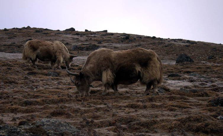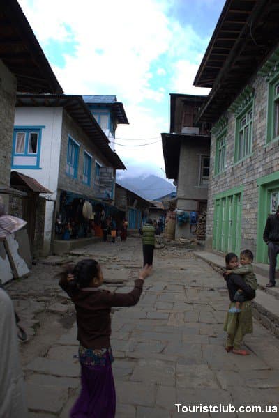 Постепенно деревья исчезают, из растительности только выгоревшая трава. Сегодняшняя цель – посёлок Дингбоче. Расположен в удобном, защищённом от ветров месте. Отсюда очень красивый вид на вершины Лходзе (8501 м), Ама Даблам и Айленд Пик (6189м). На стенах сушатся лепёшки яков – единственное, что здесь можно кинуть в печь. Дымок и пища, приготовленная на этой печи, имеют специфический запах, привыкайте 🙂