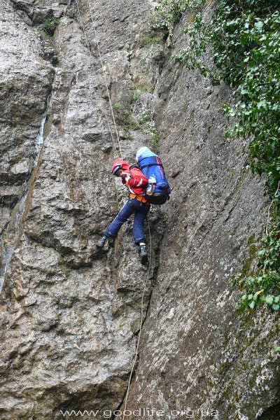 Спуск – это череда ощущений страха и удовольствия: сначала без верёвки у обрыва страшно, спуски были по 15-28 м. Присоединив страховку – не страшно, а адреналин уже действует. Второй раз страшно, когда натягиваешь дюльфер и доверяешься ему, чувствуешь собственный вес, верёвка натянута как струна…