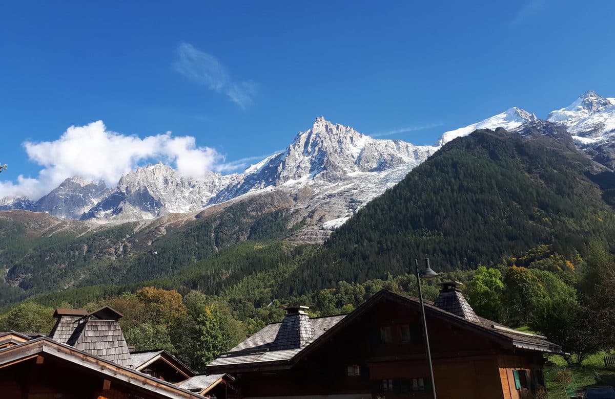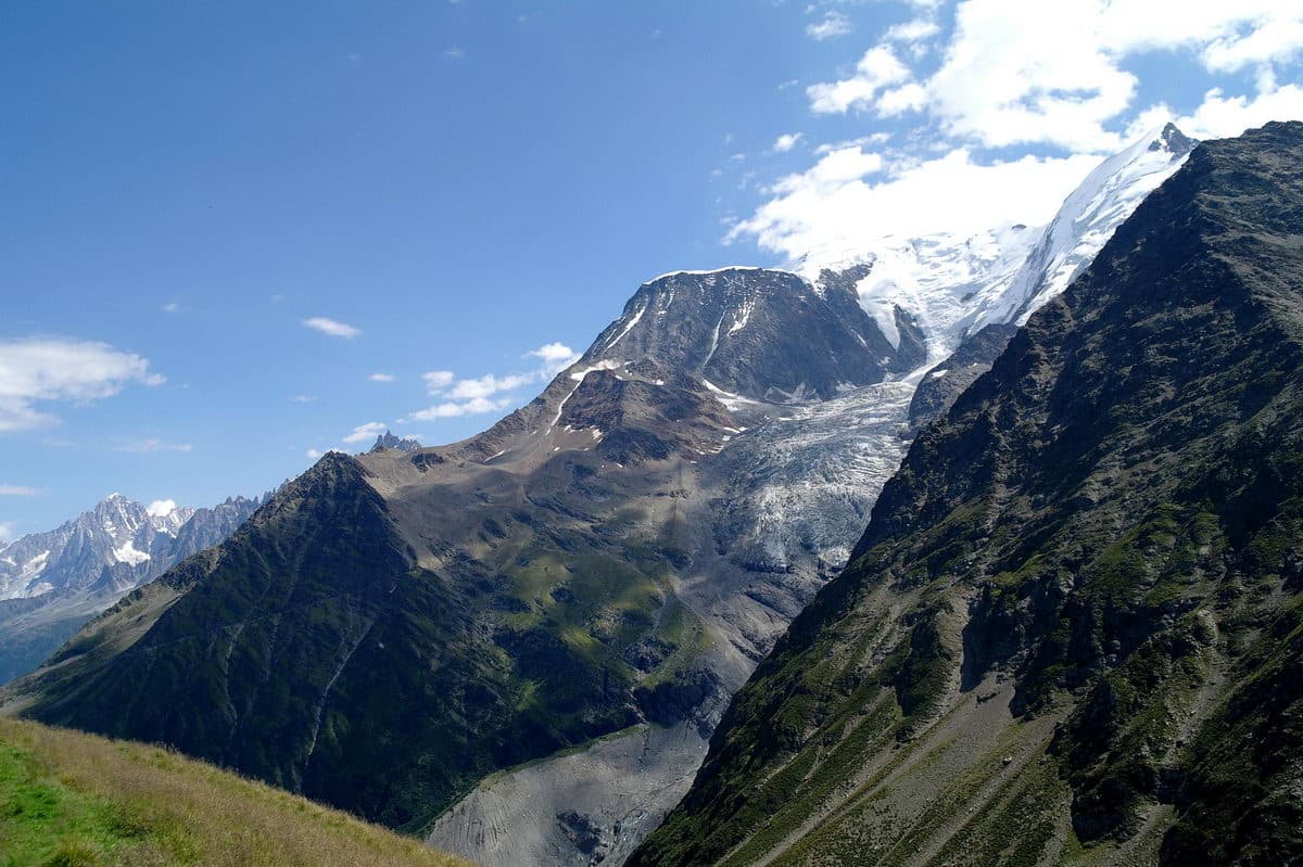 Переезжаем в посёлок Лез-Уш и поднимаемся на 900м по канатной дороге на перевал Bellevue (1801 м). Дальше держим путь мимо ледника Bionnassay к перевалу Col de Tricot (2120 м). Вот вам и первые виды на Альпы! Обедаем и спускаемся в посёлок Ле Контамин- Монжуа. Здесь докупим продукты.