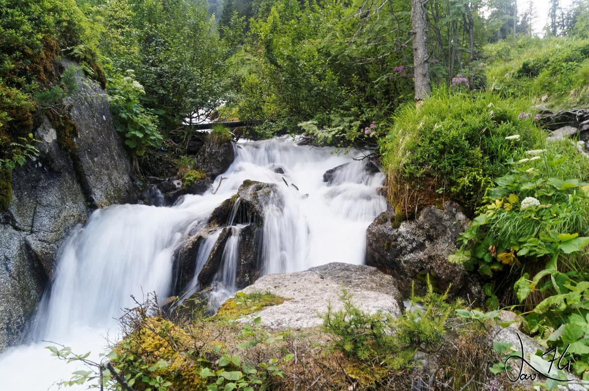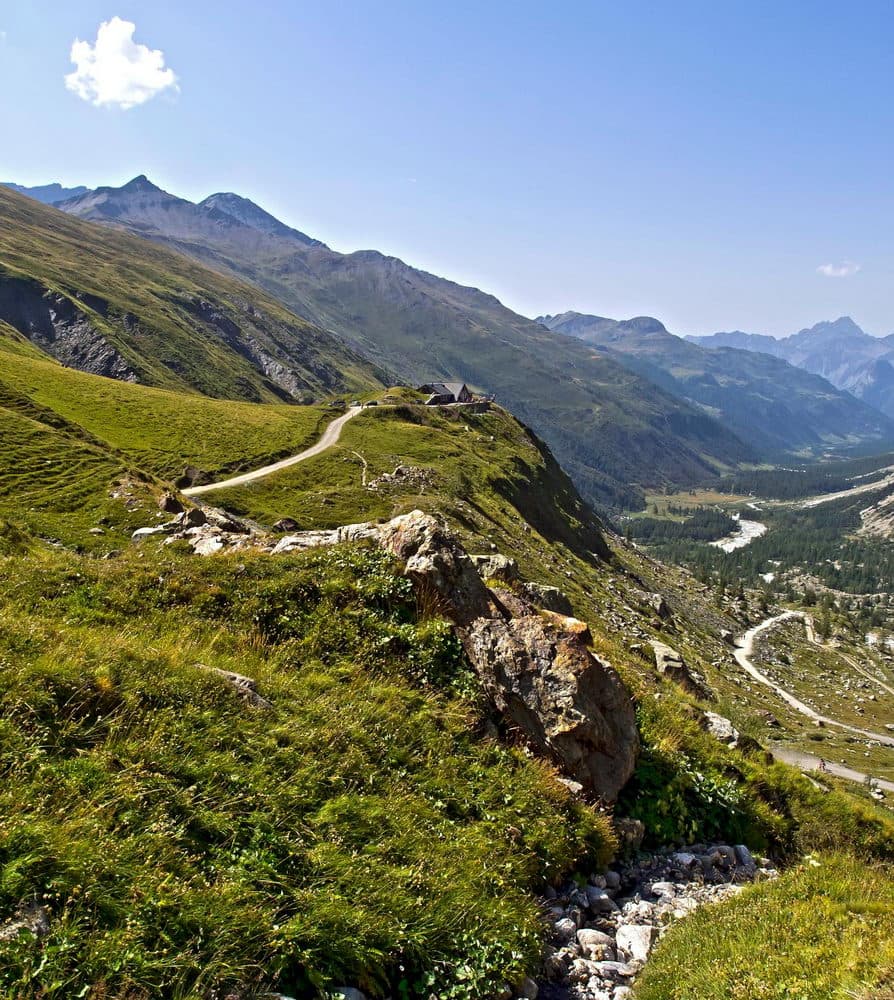 Идём сначала вдоль речки, где встретим красивый мост и водопад и затем поднимаемся всё выше и выше. Лес закончится, пойдут луга, потом и они всё больше будут уступать место голым камням. Пройдём перевал Bonhomme, но даже тут не прекратим подъём и заберёмся ещё выше, к приюту на высоте 2450м. Это самая высокая стоянка на маршруте, тут обычно холодно. Кому это не захочется терпеть, можно переночевать в приюте за 30 евро.