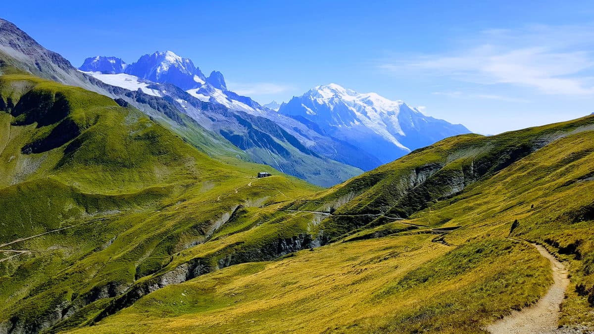 Трек вокруг Монблана является одним из самых красивых в мире. Треккеры считают, что его нужно обязательно пройти хоть раз в жизни. Маршрут представляет собой замкнутое кольцо длиной 170км вокруг наивысшей точки Альп — Монблана (4810м). И поскольку в районе этой горы точка пересечения границ трёх стран – Франции, Италии и Швейцарии, то и трек проходит по очереди все эти страны. Мало того, что природа на маршруте очень разнообразная – тут и высотная поясность от лесов и лугов до ледников, и склоны южные от северных сильно отличаются, так и ещё и колорит сразу трёх стран можно наблюдать в приютах и деревнях.