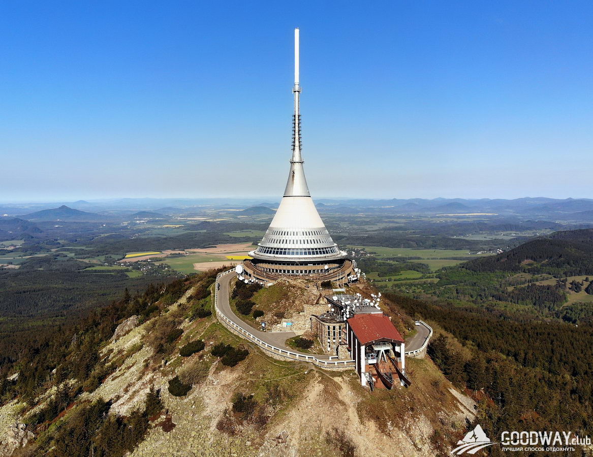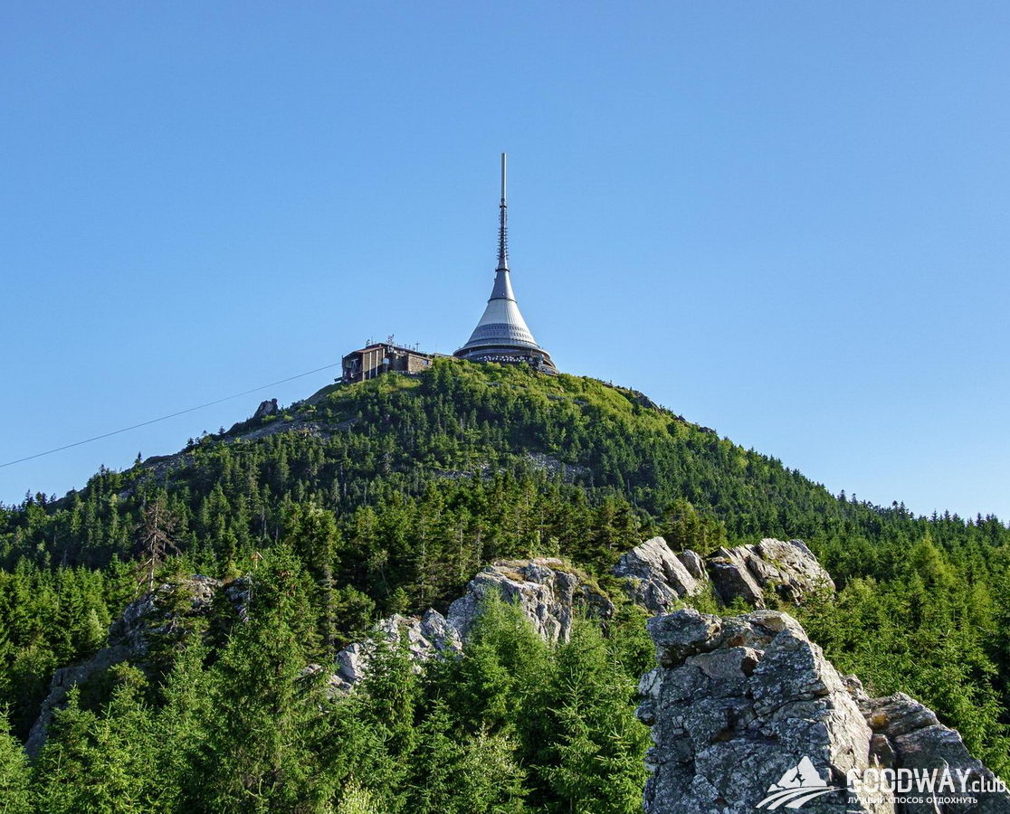Встречаемся в Праге и переезжаем в Либерецкий край. Машиной доедем до высоты 750м, остальное до вершины горы Йештед (1010м) пройдём пешком. Эта гора известна благодаря 94 — метровой оригинальной постройке на вершине, легко узнаваема и видна из очень многих мест. Также отсюда шикарный вид на 360 градусов. Наивысшая гора Чехии — Снежка (1605м), до которой отсюда 53км, тоже видна. Постройку завершили в 1973 году, и она совмещает в себе телепередатчик, отель и ресторан. Тут и пообедаем.