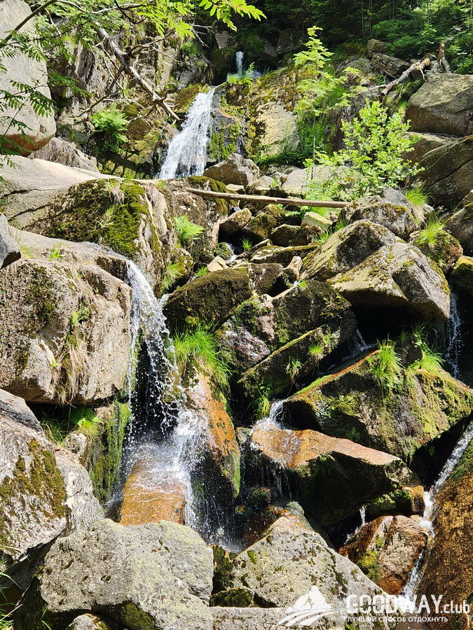 Сегодня будет красивый трек по Йизерским горам. Начнём с культурной части – монастыря 17 века. Хорошо отреставрирован, красиво выглядит на фоне гор. Подъём вверх будет по лесу вдоль горной речки с перекатами и водопадами. Красивая, приятная тропа. Выходим на плато, как раз в обеденное время попадётся кафе. Дальше ещё небольшой подъём через черничные заросли, и мы на горе Голубник 1071м. Прекрасная смотровая площадка, хорошо виден Йештед. Это будет наивысшая точка всего тура. Спускаться будем вдоль другой речки, ещё более богатой на водопады.