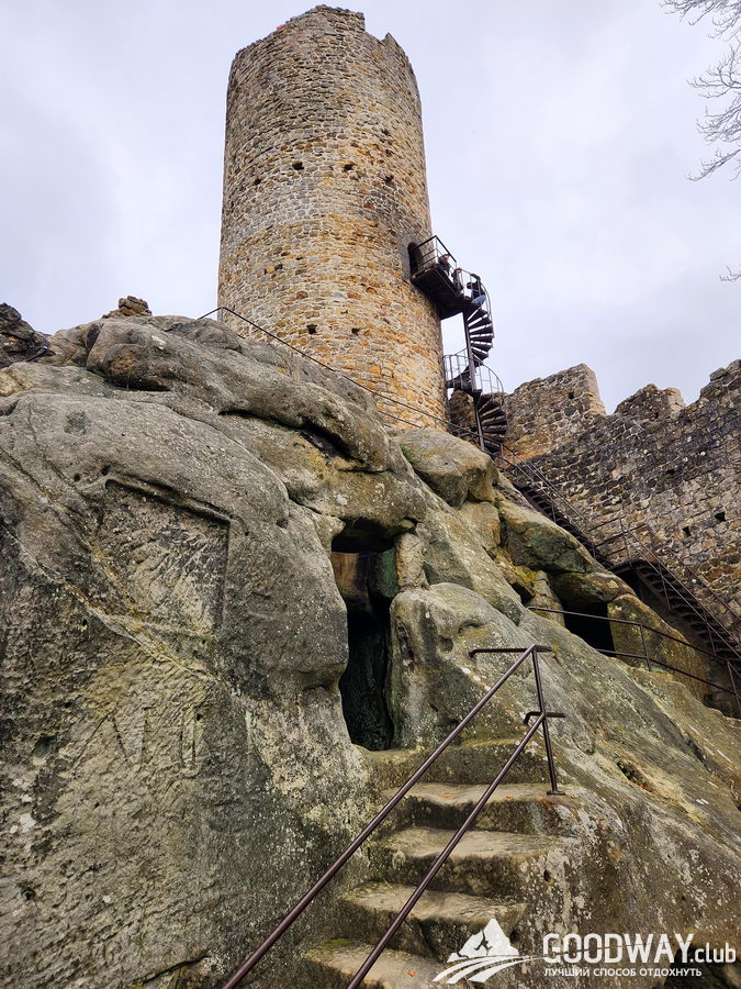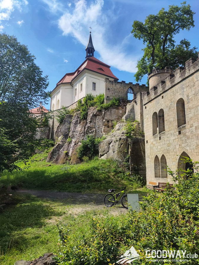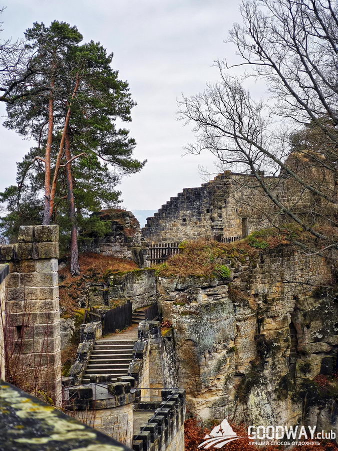 Потом снова каменные лабиринты, смотровые, и мы у крепости Вальдштейн. Здесь тоже есть новые постройки, часовня. Но и остатки крепости имеются.