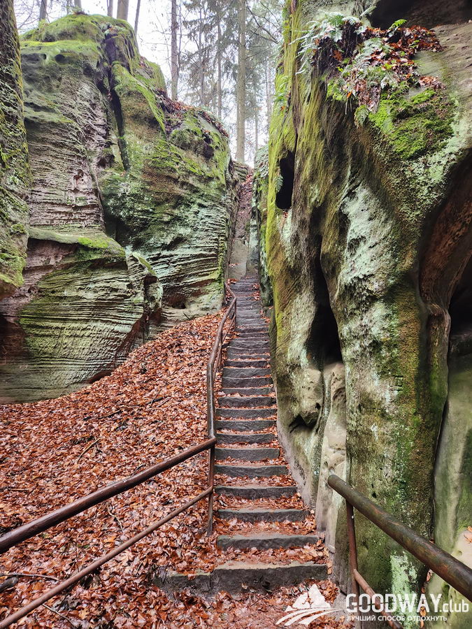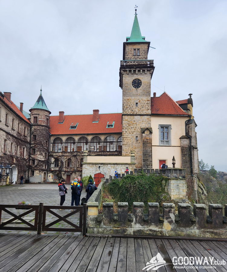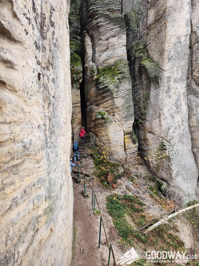 Отправляемся в район Мала Скала. Есть тут одноимённый замок, но он в частном владении и закрыт для туристов. Поэтому, заходить туда нет смысла, мы лучше сразу поднимемся на смотровую и насладимся просторами сверху. Далее будет крепость Вранов, в основном это выдолбленные в скале комнаты и проходы, но их тут много. Ещё есть очень живописная церквушка. С другой стороны горный хребет охраняет крепость Фридштейн. Здесь сохранилась зачётная высокая башня, куда ведут винтовые лестницы. Потом через поля и лес переходим в лабиринты Беседицких скал. Вот, здесь уже традиционные для Чешского рая песчаниковые башни и бесконечные смотровые. Селимся в городе Турнов, где будем остальные 3 ночи.