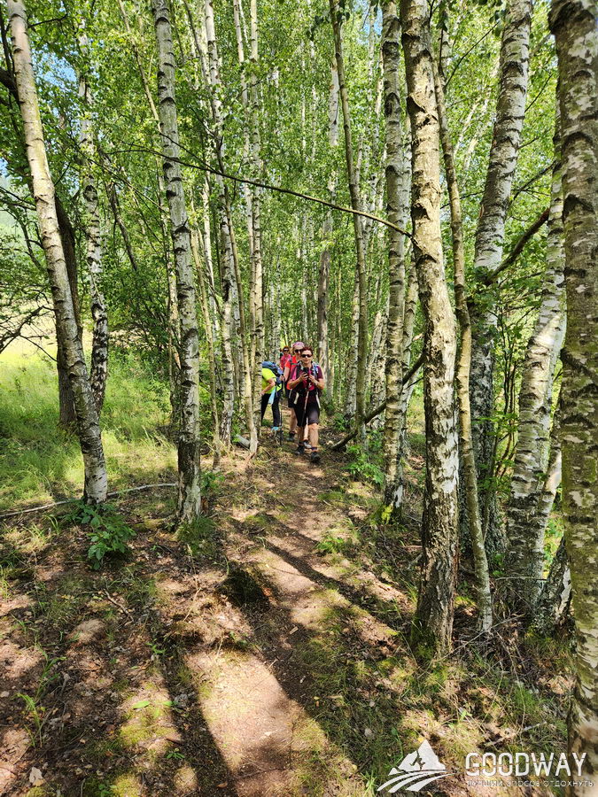 Спускаемся с горных высот, начинается лесисто-луговая часть маршрута. Ночёвка в палатках в лесу.