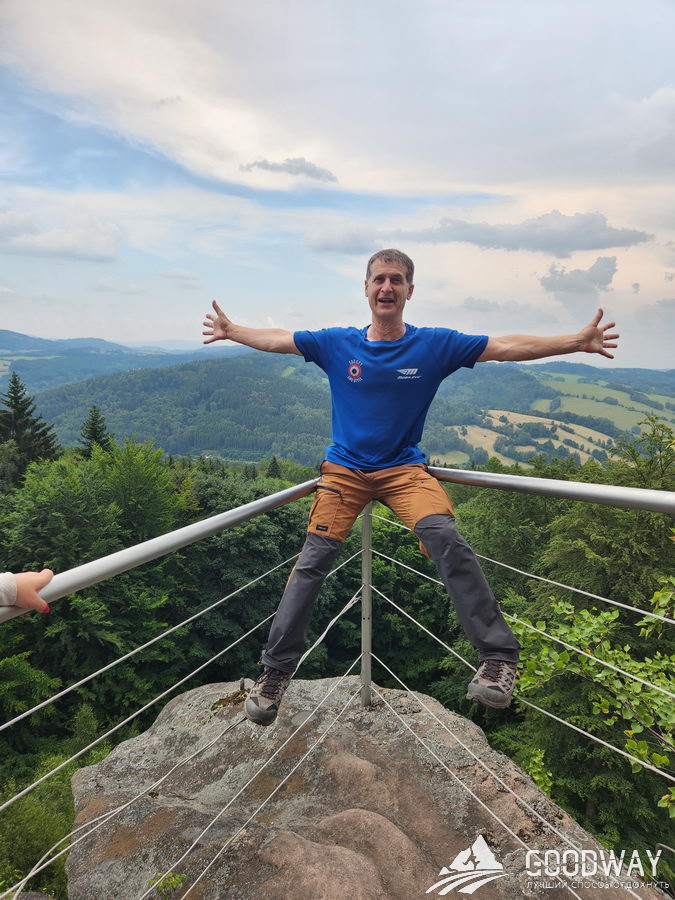 Нам предстоит снова подняться в лесистые горы на границу Чехии и Польши. Тут будут скальные выходы и несколько смотровых точек. Спускаемся к дороге и переезжаем в Теплице, селимся в кемпинге, где пробудем остальные три ночи.