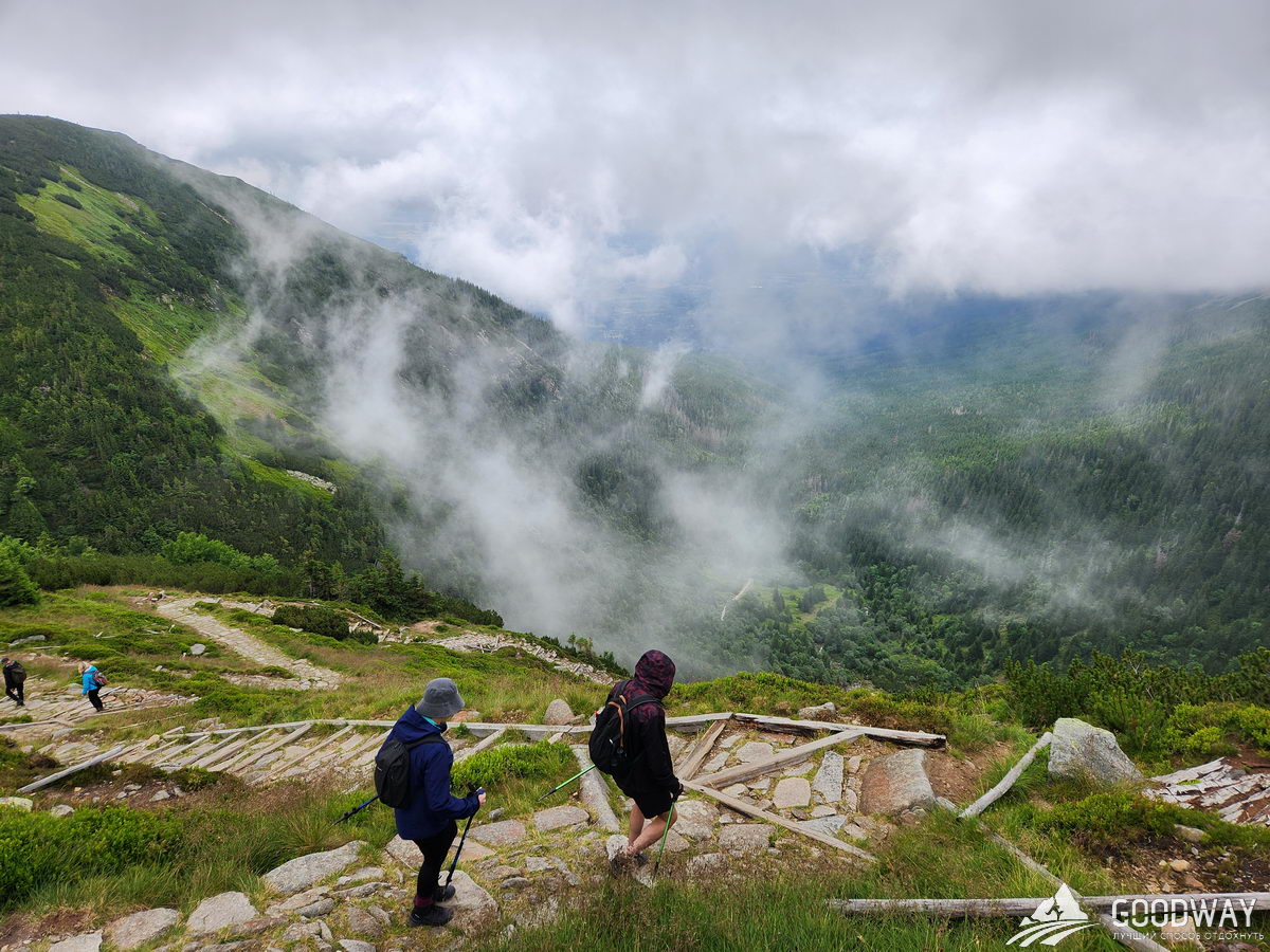 Возвращаемся на хребет, но сегодня большую часть пути будем идти по Польше. Кроме гор, откроются ещё виды на симпатичные озёра. Пройдём по деревянным мостикам болотистую местность, очень напоминающую тундру. Ночевать будем у подножия горы Снежка, в польском приюте. Высота 1400м, это самая высокая наша ночёвка. Виды здесь суперские!