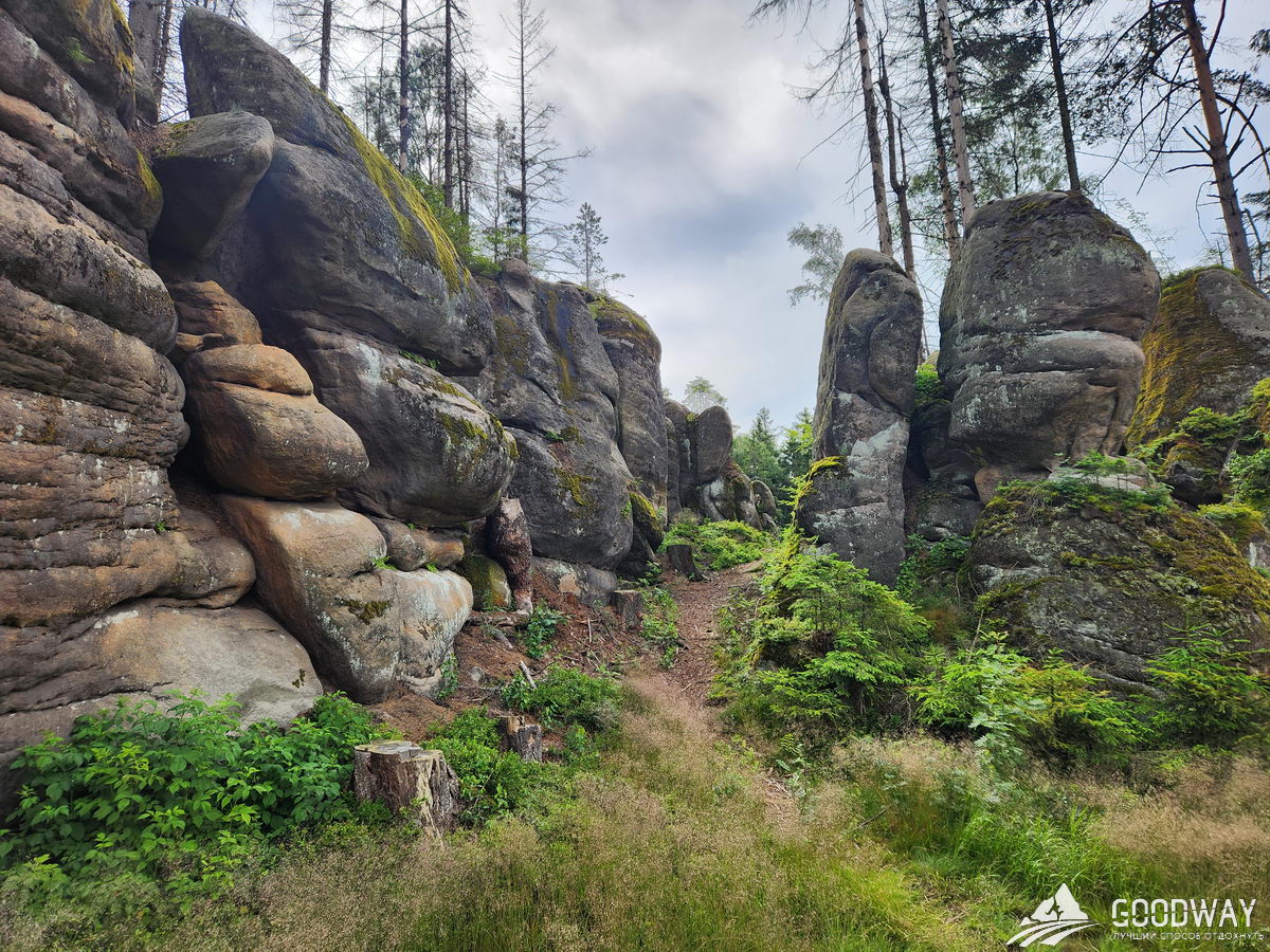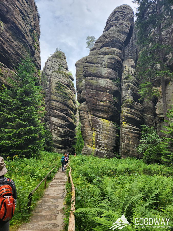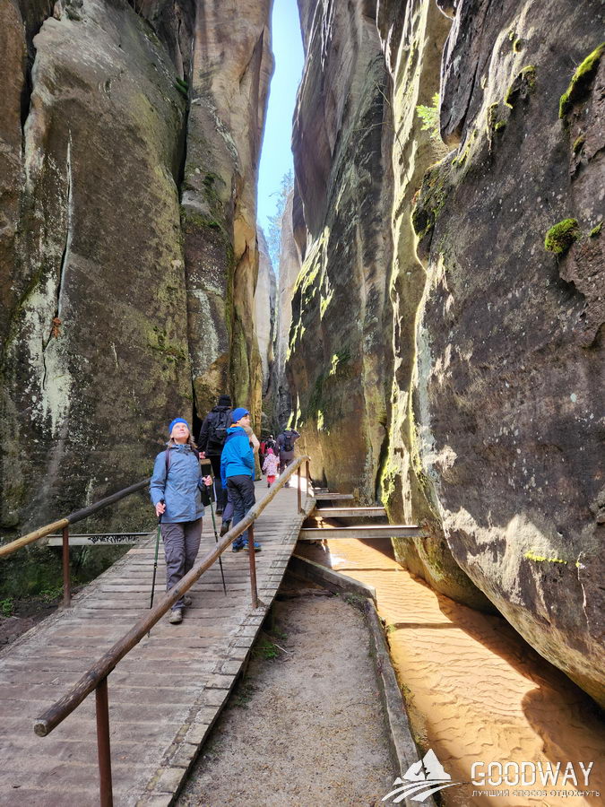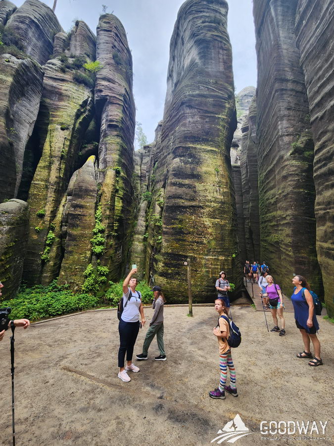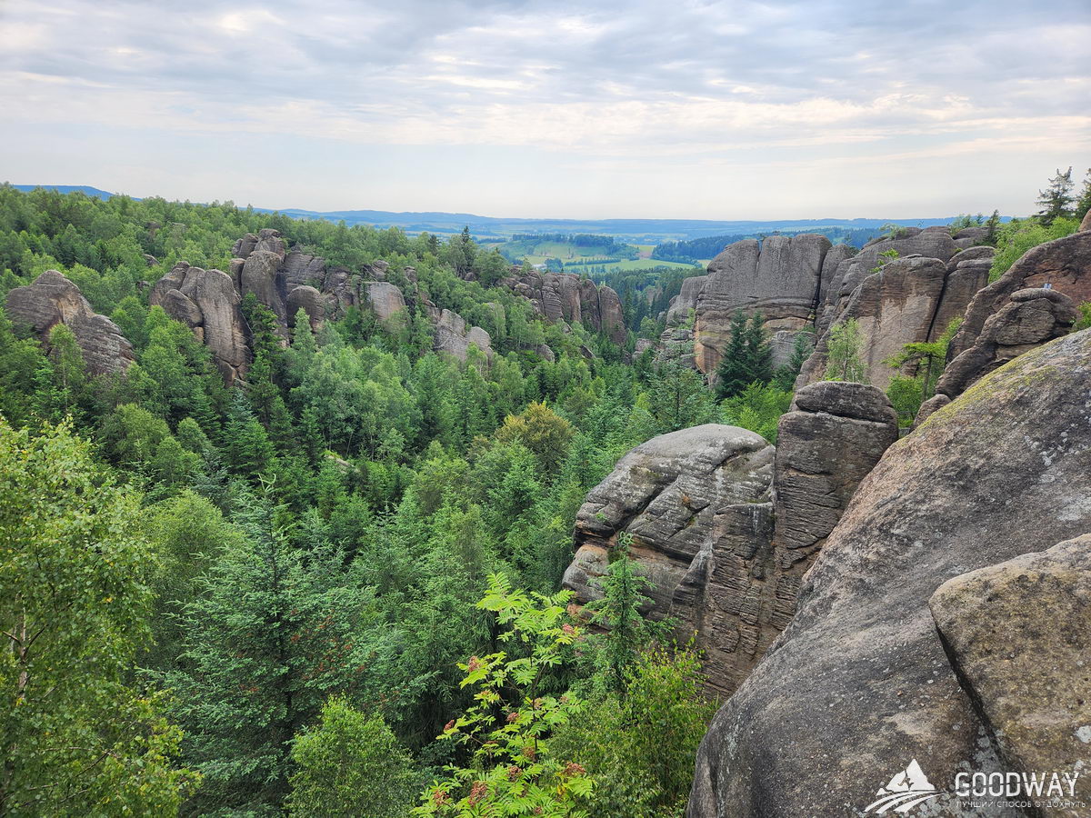 Сегодня снова очень видовой день. Снова причудливые скалы. Но другие. Скальный театр, цирк, грибы, Смотровые площадки над пропастями. Каменные лабиринты. Эти скалы не так популярны, как вчерашние Адршпашские, и это прекрасно. Виды тут не хуже, а народу гораздо меньше. Все в один голос говорят, что это даже лучше Адршпаха, ощущается всё ближе, спокойнее и по-домашнему.