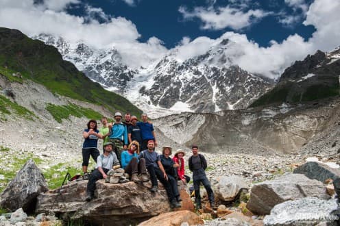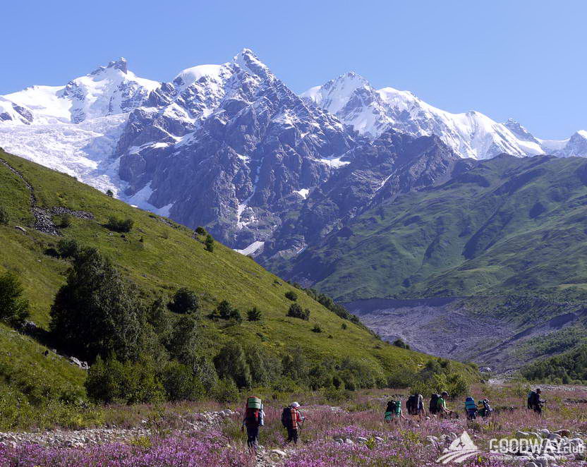 Далее начнём подъём на Сванетский хребет, разделяющий Сванетии на Верхнюю и Нижнюю. Пойдут рододендроновые заросли, необыкновенно красивые во время цветения в июне-начале июля. Лагерь установим на чудесном месте с видом на Шхару и Тетнульд.