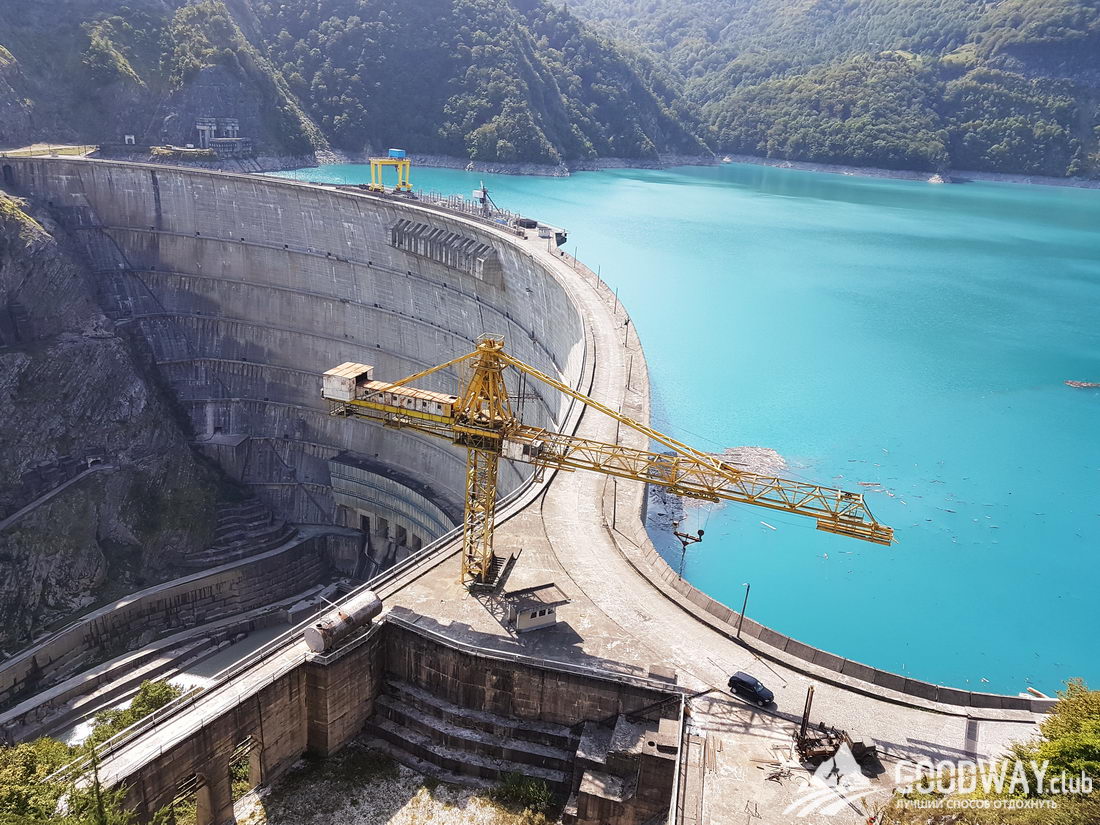 Выезжаем в административный центр Верхней Сванетии город Местию. По пути можно сделать остановку на осмотр гигантской плотины ингурской ГЭС, пообедать в кафе у водопада и попробовать природного газированного нарзана.
