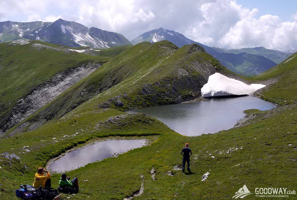 Продолжим подъём на Сванетский хребет до перевала Гвибари. С него хорошо видны на севере все пики Главного Кавказского хребта, в том числе Эльбрус. Пройдём часть хребта, продолжая наслаждаться сменяющимися видами на снежные горы и очень фотогеничные озера. В солнечную погоду они прогреваются, можно искупаться.