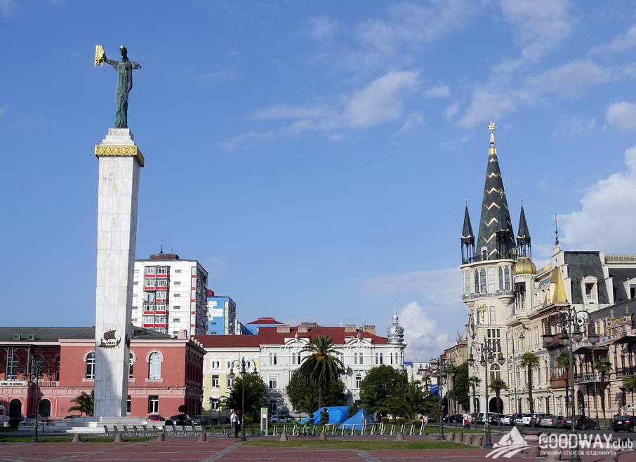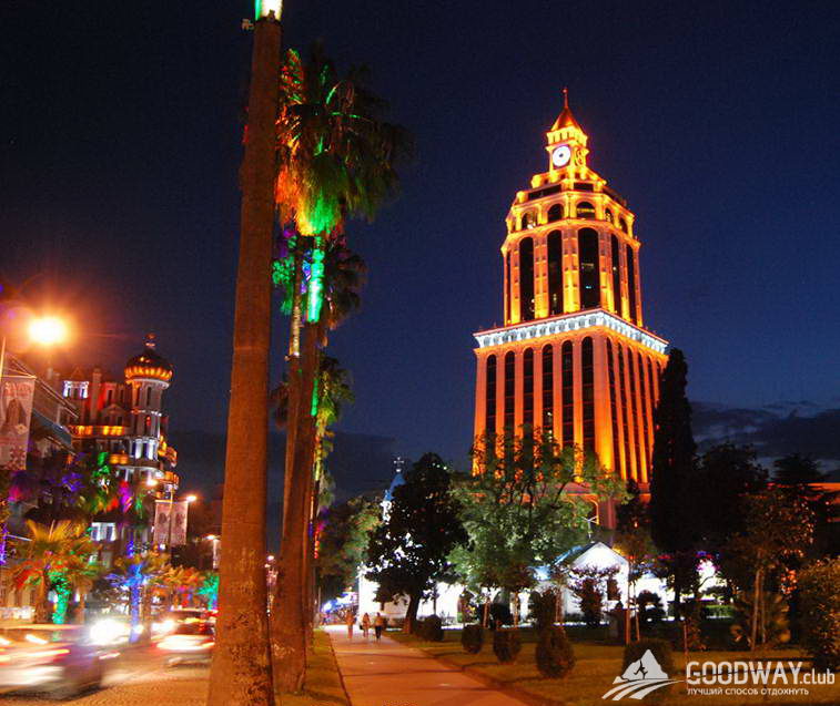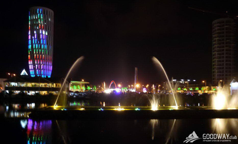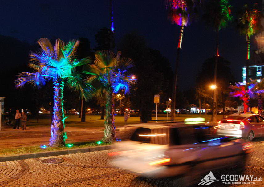 Вдоль 10-километровой заново отремонтированной набережной выстроились новые здания в стиле Хай-тэк, статуи, стеллы и памятники. Поражают танцующие фонтаны. Конечно, Батуми интереснее всего в вечерние часы, когда все переливается всеми цветами, тут даже пальмы разноцветные вечером!