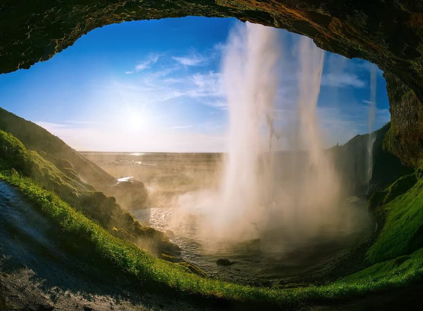 Увидим водопад Сельяландсфосс – один из самых интересных в Исландии. Экскурсионная тропа проходит прямо за стеной воды, и это незабываемое зрелище!