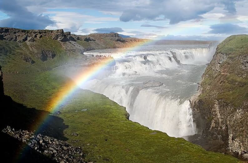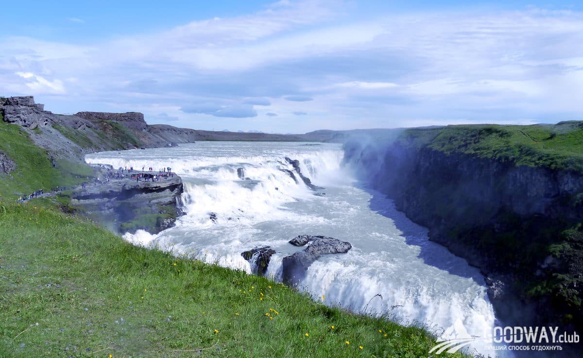 Увидим красивейший водопад Гюдльфосс, что несется мощными каскадами прямо на зрителя и падает в стометровую пропасть, дна которой не видно. Здесь множество радуг, воздух вокруг нас пронизан разноцветным светом.