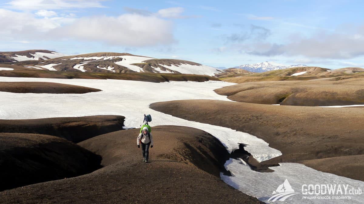 Впереди самый сложный участок похода по Исландии – между ледниками Ми́рдальсйёкюдль и Эйяфьядлайёкюдль. Подо льдом последнего скрыт вулкан, в 2010 году остановивший авиаперелёты над всей Европой – так много пепла он выбросил.