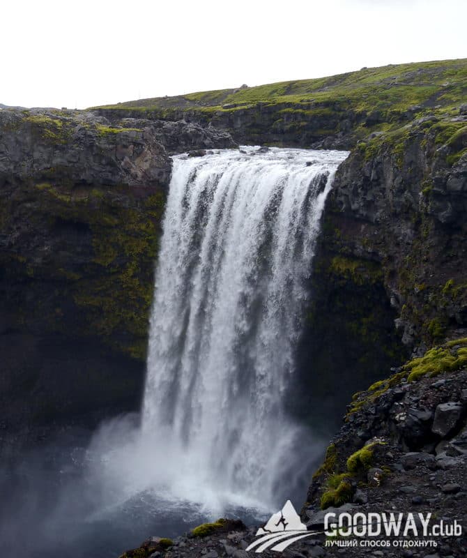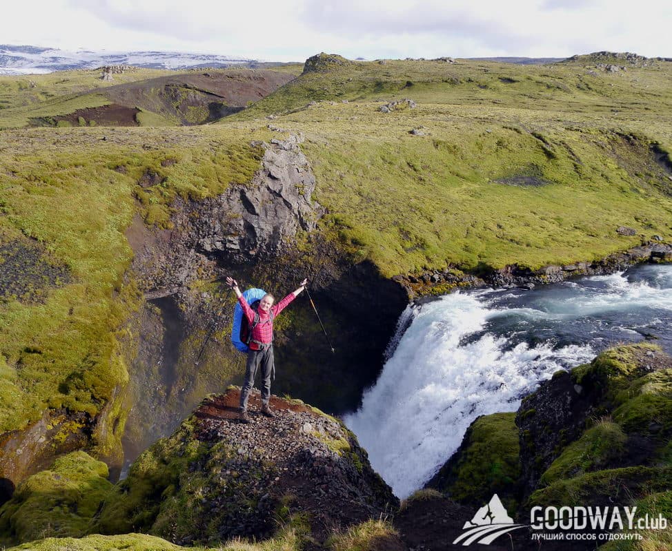 Утром стоит встать пораньше – радуги водопадов особенно красивы в утренних лучах. Продолжаем спуск вдоль реки Скоуга — водопады, каскады, каньоны, ледники на дальних планах – и Великий Океан впереди…. Завершает поход 60-метровый водопад Skógafoss (Скоугафосс).
