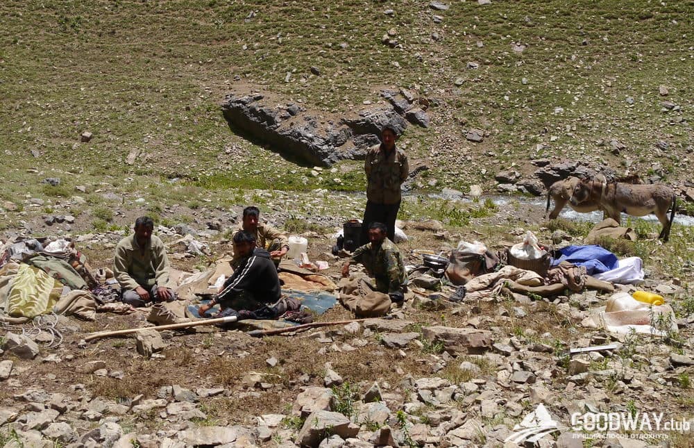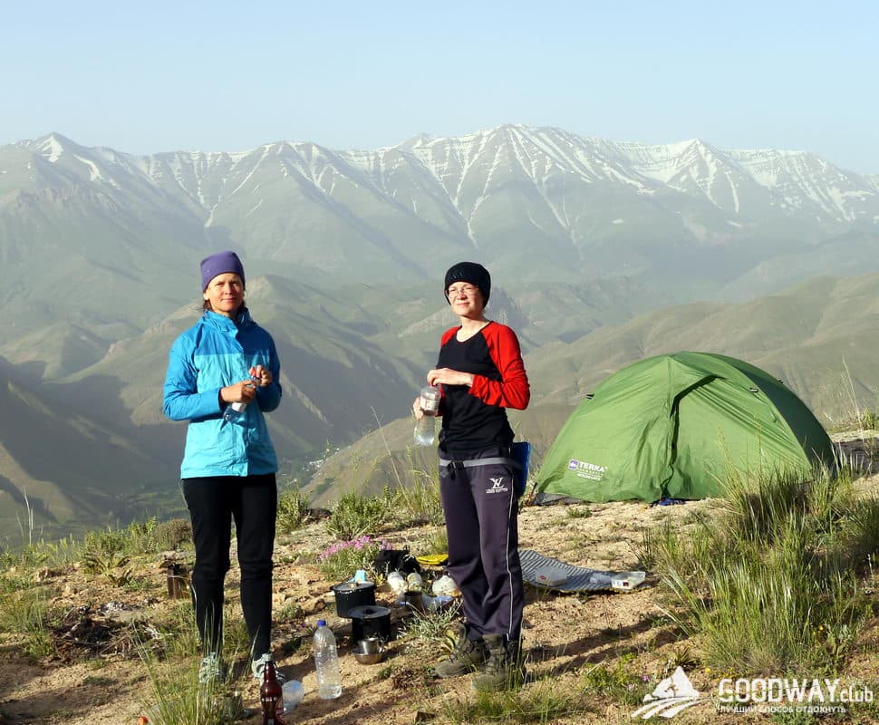 Переезжаем автобусом в городок Полур и оттуда на внедорожнике поднимаемся в лагерь 2 Гузфанд Сарай на высоту 3020м. Радушный хозяин приюта Акбар предложит чай из местных трав. Ночевать будем в палатках или в приюте при мечети. Кстати, мечеть эту используют как храм божий почитатели всех религий, можно по-своему попросить Бога об удачном восхождении. Здесь заканчивается иранский дресс-код, девушки щеголяют в обтягивающих штанах и бейсболках 🙂