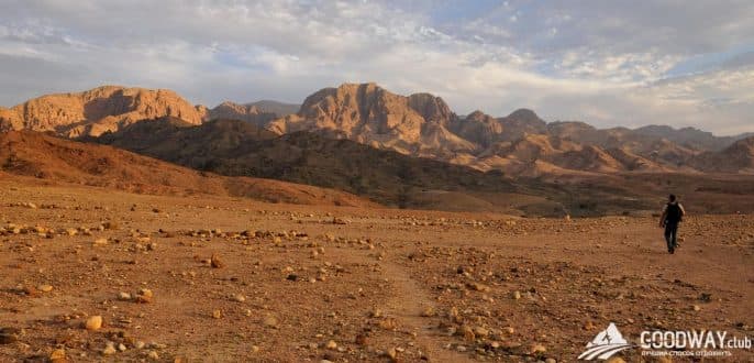 Ранний подъем и завтрак. Сегодня первый ходовой день, и нас ждет сравнительно большой переход, свыше 20 км. Но, есть и хорошая новость, идти мы будем в основном вниз. Нам необходимо спуститься по живописному и фотогеничному каньону, и выйти в долину Вади Фейнан. По дороге кроме пастухов и их вездесущих коз нам встретятся античные развалины рудников, где в римскую эпоху добывали медную руду. На ночевку встанем в долине, рядом с бедуинами.