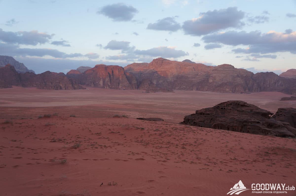 Сегодня у нас радиальный поход по пустыне. Завтракаем, оставляем лагерь на месте, берём с собой воду, перекус и на весь день уходим бродить по пустыне. Нас ждут марсианские пейзажи, скалы из песчаника, арки-мосты, каньоны и конечно верблюды, в своей естественной среде обитания. Вечером возвращаемся в лагерь. Ужинаем и наблюдаем закат уже как настоящие пустынные жители!