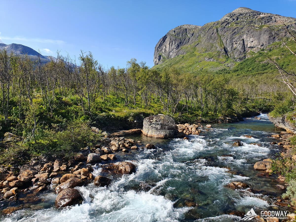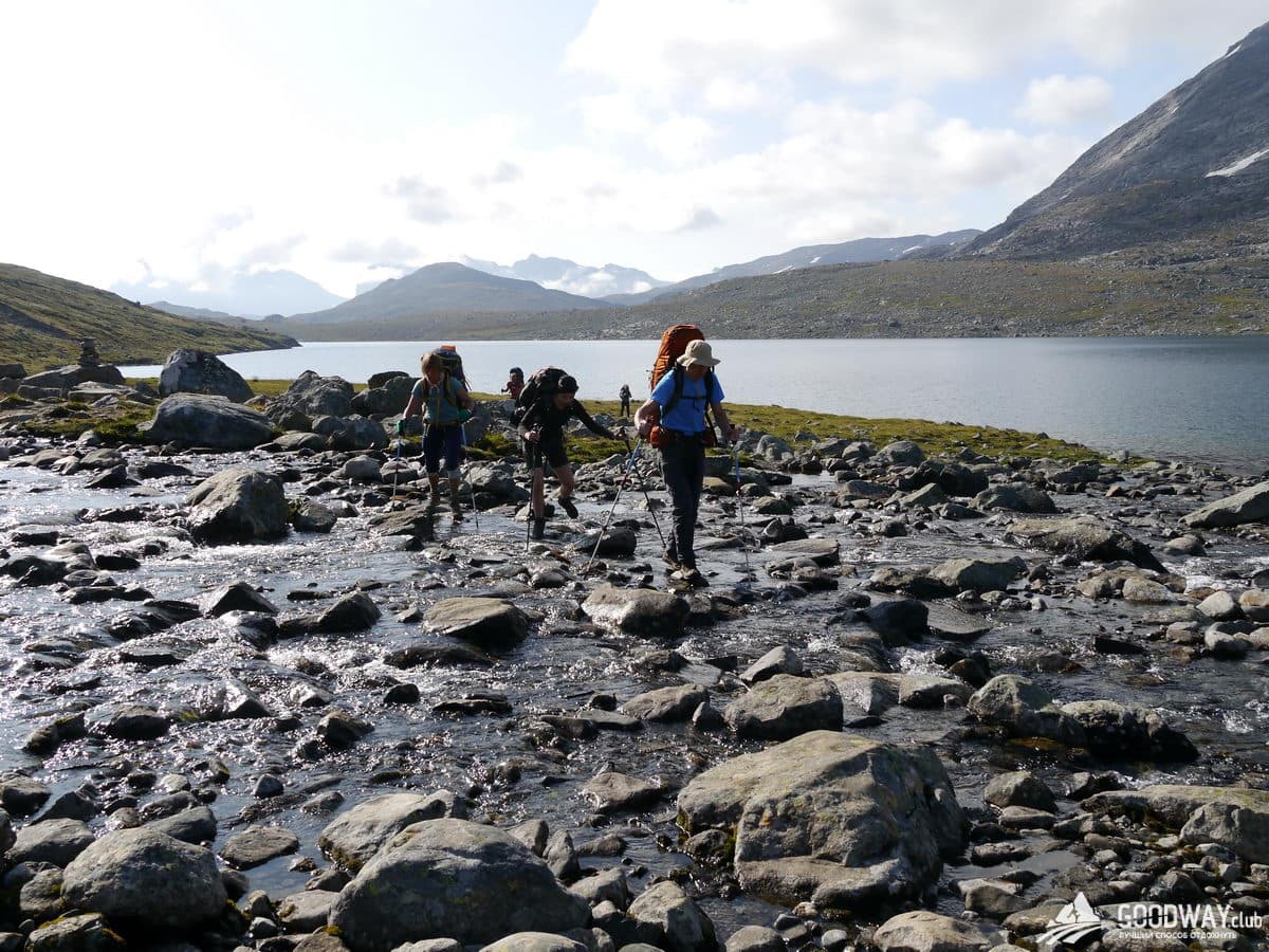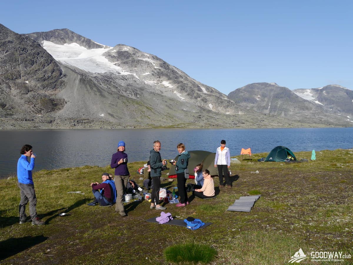 Сегодня продолжительный сложный переход. Спускаемся по долине реки Сторутла. Тропы каменистые, много переходов через речки. Бесконечные озёра. Покидаем высокогорную местность, начинается карликовый лес. Здесь в изобилии растут черника, голубика. Есть и грибы, на ужин будет ароматный суп!