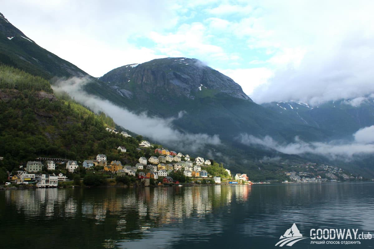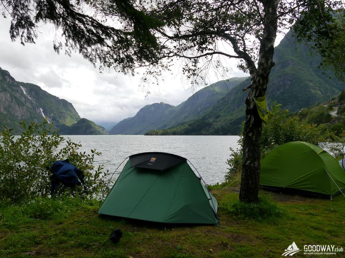 Немного подъедем на автобусе, и мы на берегу фьорда в городке Эвре-Ордал. Расположимся тут в кемпинге. Будет горячий душ и электричество.