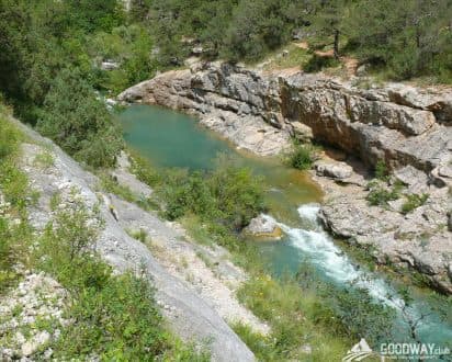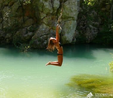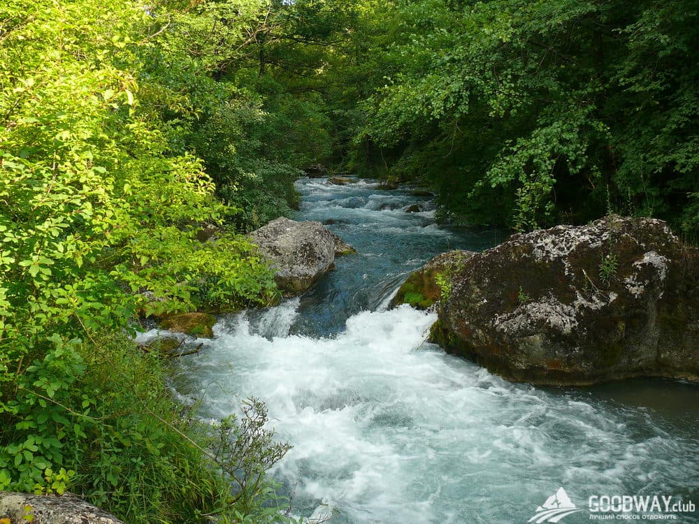 Переключаемся со спокойного созерцания тихих развалин на драйв и приключения! Чёрная речка-самая полноводная в Крыму. И то, что она проходит через такой красивый каньон — просто чудесно! Здесь будет много водопадиков, бурлящих перекатов и порогов, голубых ванн. Местами каньон сужается, тропа обрывается и придётся идти по брёвнам, прижавшись к скалам.