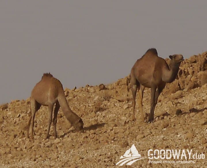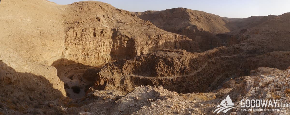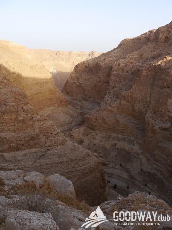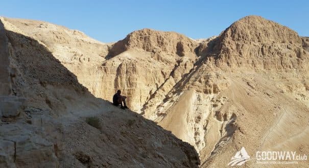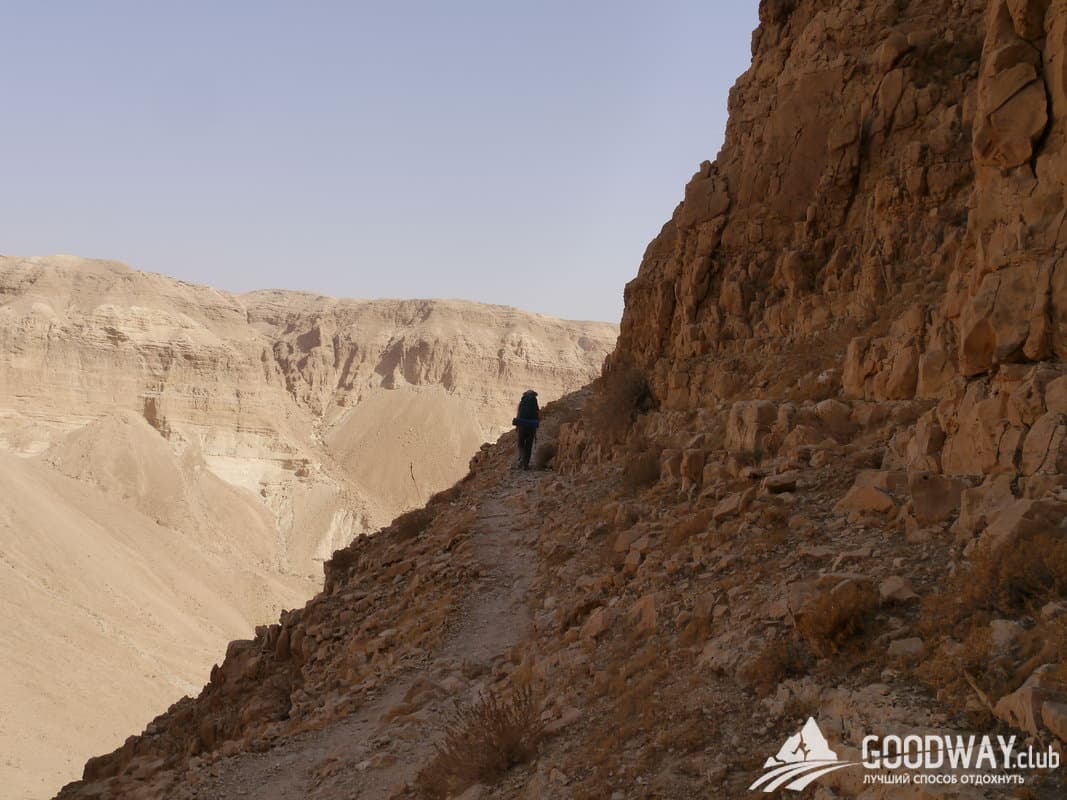 Дальше продолжим подъём уже по стене каньона, чтобы выйти на плато. Где бы мы ни были, будет по-своему завораживающий вид на каньон, Мёртвое море и Иорданию на том берегу. К пейзажу могут добавиться верблюды и дикие рогатые серны.