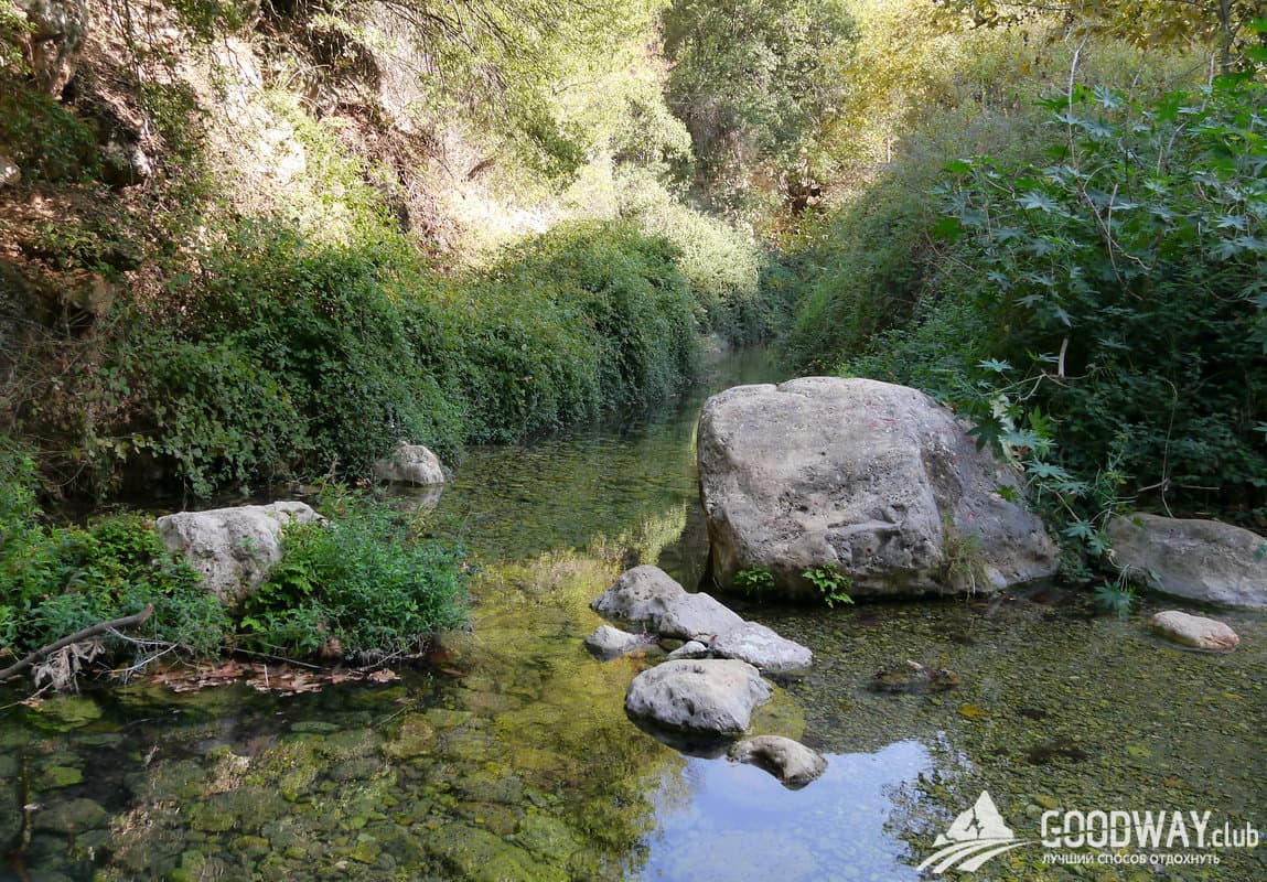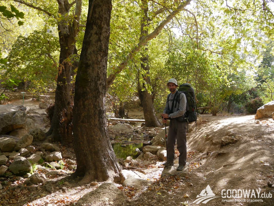 Вдоль ручья создан заповедник, по которому мы и будем идти весь день. Из диких зверей тут будут в изобилии кабаны, лисицы, горные сурки, гиены. Ночью с фонариком можно набрести на дикообраза, выбравшегося на охоту из убежища, в котором проводит весь день. Попадутся и пара озёр, полных форели, которую можно поймать руками. Однако, это заповедник, и вмешиваться в жизнь его обитателей запрещено, потому только посмотрим на все местные диковинки. Будет на пути и пещера, из которой вытекает родник. Желающие могут заползти в узкий ход и провести исследование тайного подземелья. На ночёвку поднимемся в лес и отвоюем место для лагеря у диких животных, которые будут пытаться нас выкурить отсюда с помощью «страшных» звуков, особенно отличатся кабаны и гиены. Не обращайте внимания, сильно близко они всё равно не подойдут.