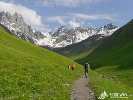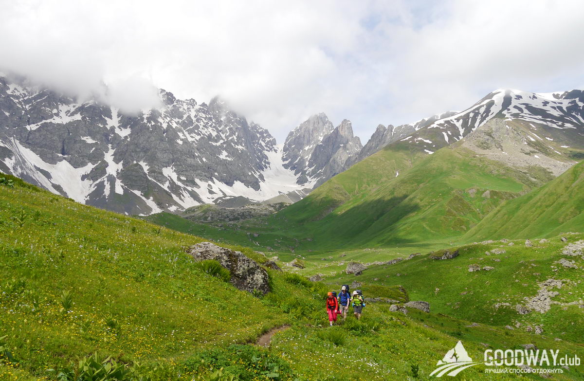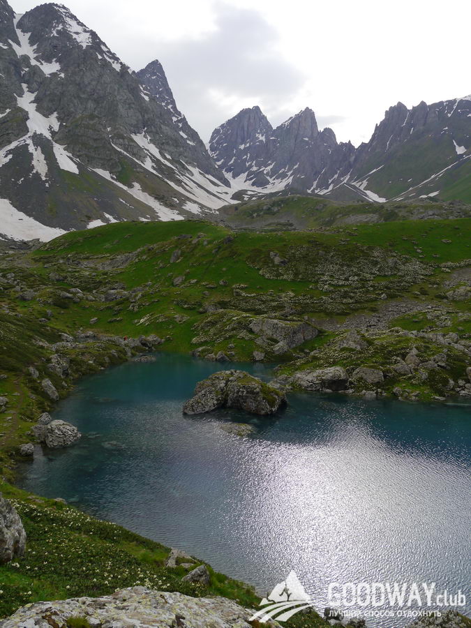 Продолжим поход по Грузии не спешным подъёмом на перевал Чаухи. Путь будет украшать вид на хребет Чаухи, состоящий из 7 остроконечных вершин. На перевале долгий привал на обед и затем спуск к Абуделаурским озёрам. Их тут три: Синее, Зелёное и Белое, согласно цвету воды. Лагерь будет рядом с зелёным.