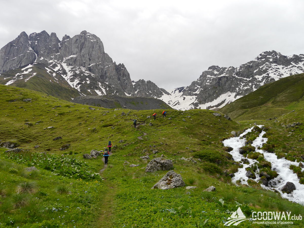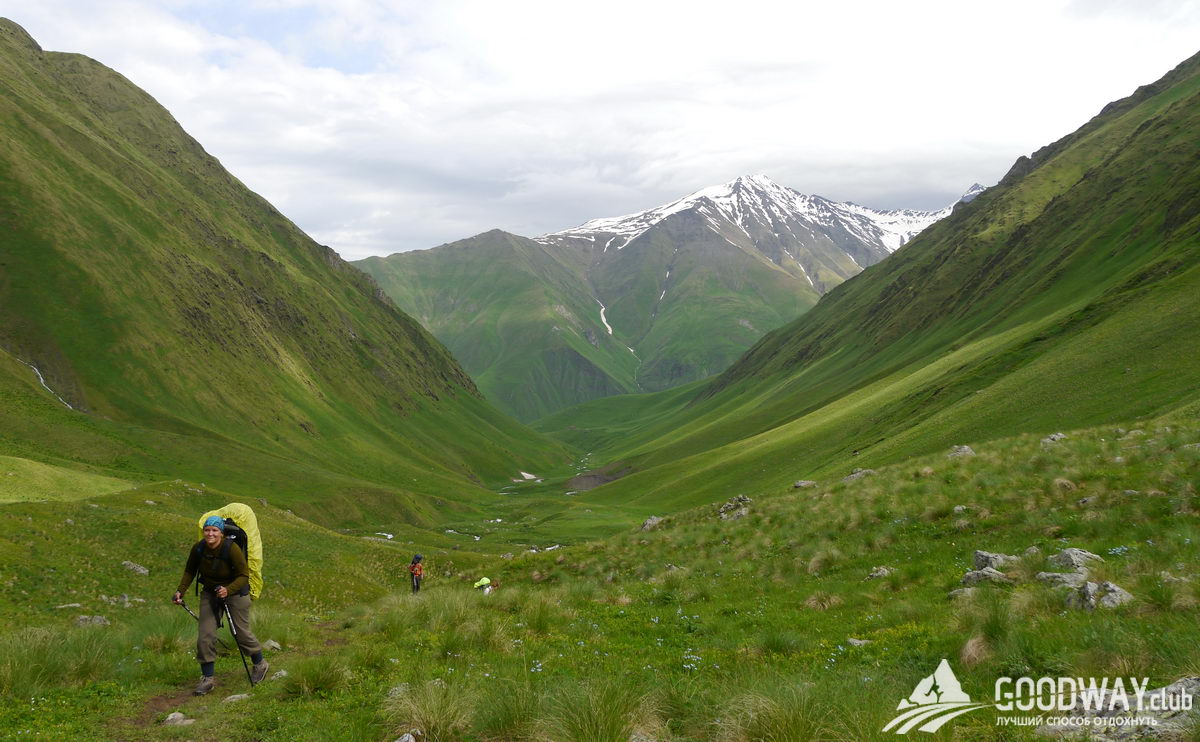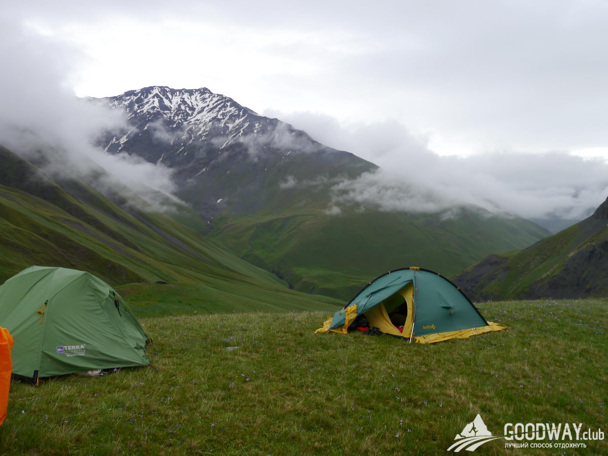 Продолжим начатый вчера набор высоты, чтобы перевалить через хребет Ацунта, разделяющий Хевсуретию и Тушетию. В 6 км от нас будет сверкать ледниками гора Тебулосмта 4500м, это уже граница с Россией, и гордость Чечни — высшая её точка. На ночёвку спустимся к лагерю пограничников.